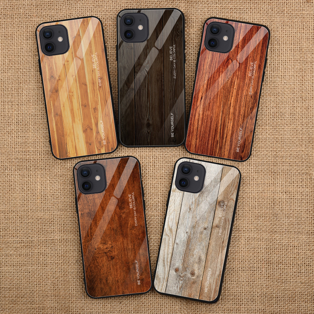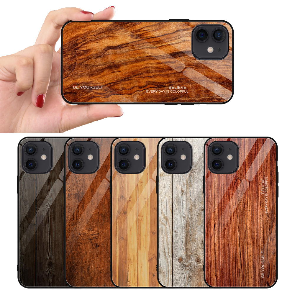 Wood Grain Tempered Glass Phone Case for IPhone 13 Pro Max/iphone 13 Pro/13 Mini Tempered Glass Cover for IPhone 12/12