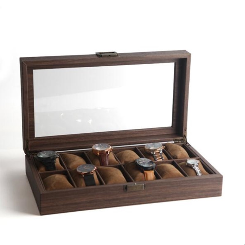 Wood Grain Leather Watch Display Box Watch Storage Box