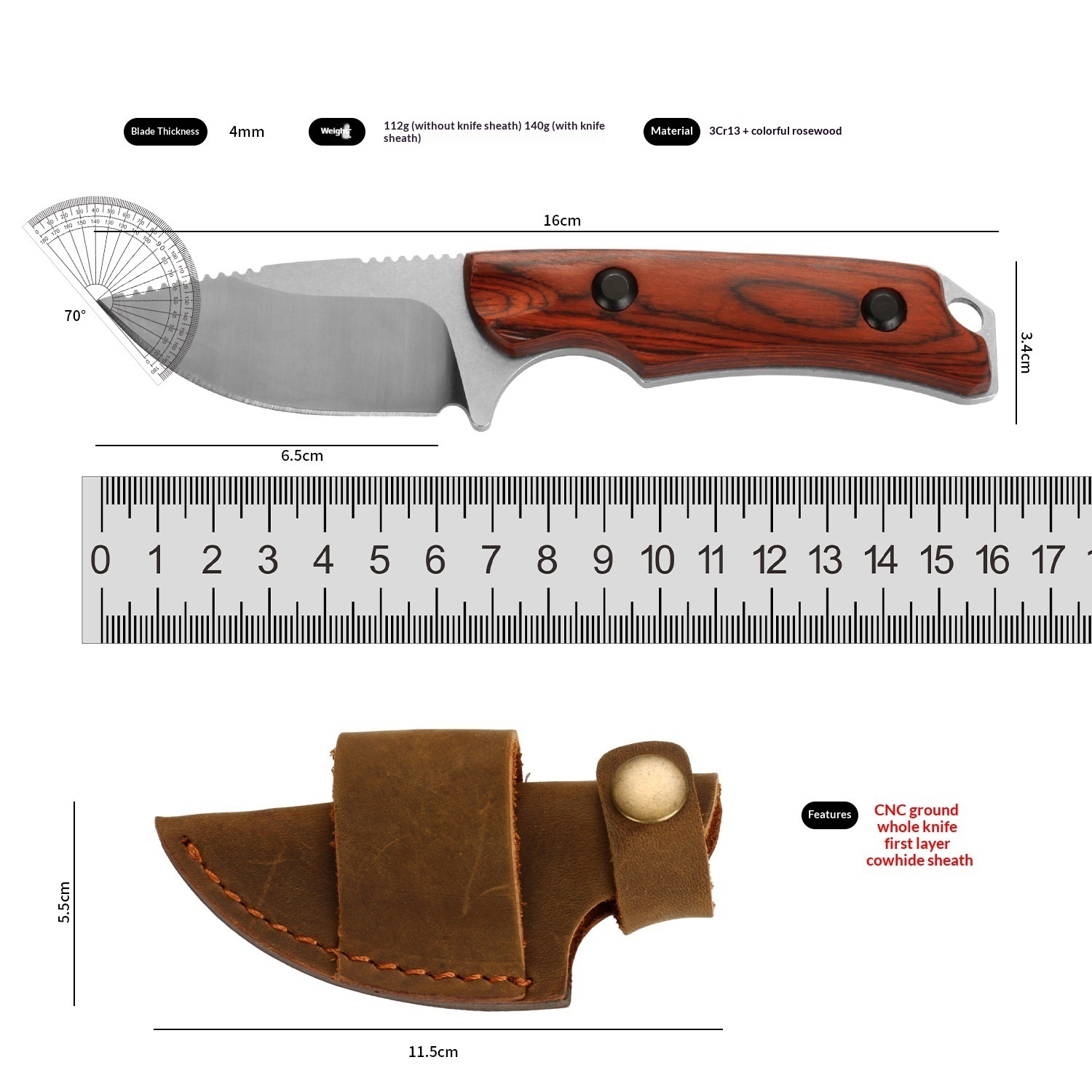 Product information:Specifications: Z130 Blade thickness: 4 mm Blade tip angle: 70° Material: 3Cr13