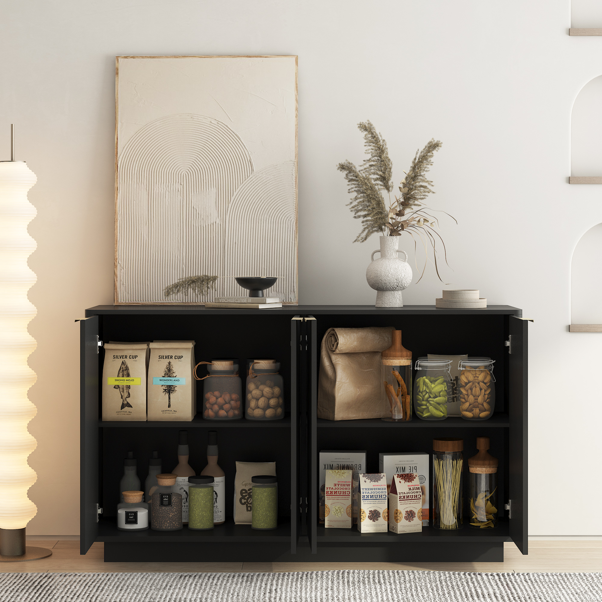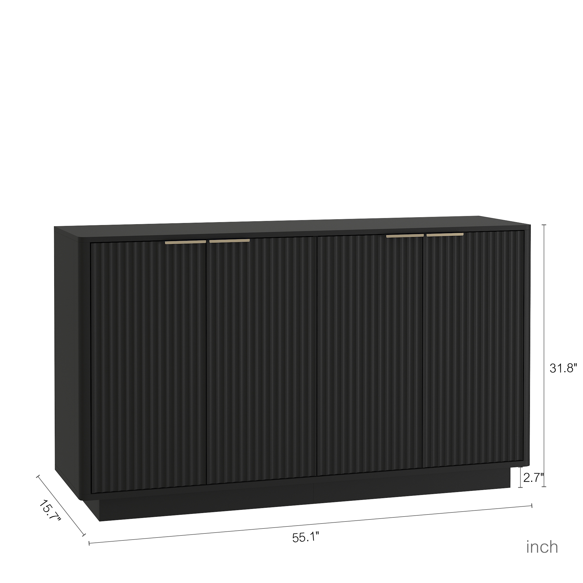 • 【Large Storage Space】: The buffet table is equipped with a wooden corrugated board decorative door, with a spacious top and four large spaces inside, which is perfect for placing your collections or decorations or necessities, keeping your room neat and organized