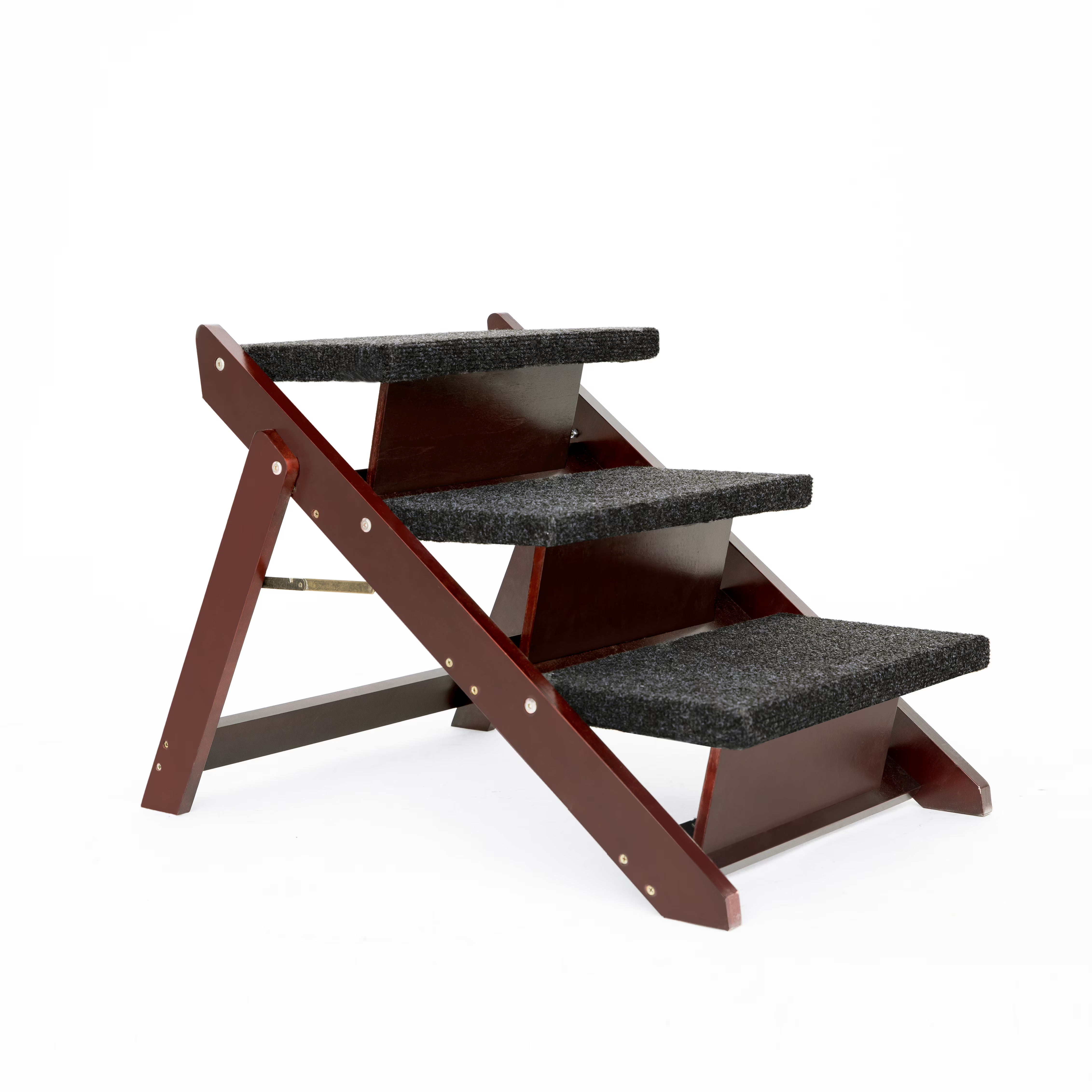This foldable 3 - level wood pet stairs and ramp is an ideal solution for your furry friends. It serves as a convenient access for pets up to 110 pounds to reach beds and cars with ease. The 3 - level design provides a gradual ascent, reducing the stress on your pet's joints. The combination of stairs and a ramp offers flexibility in usage. The foldable feature makes it highly portable, allowing you to take it with you on trips or move it around the house as needed. It helps your pets gain independence and access areas that they might otherwise struggle to reach.