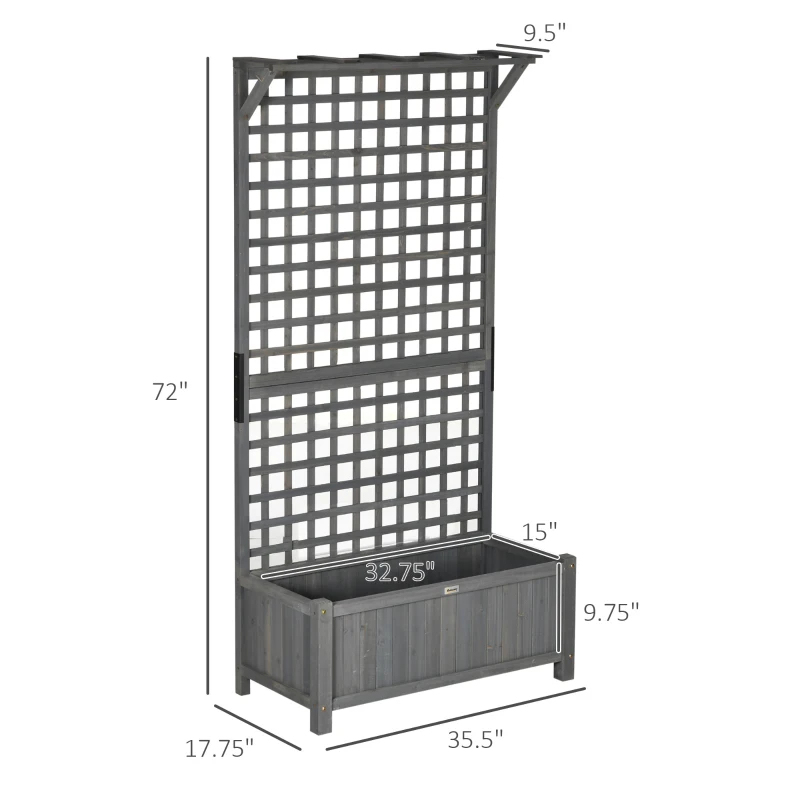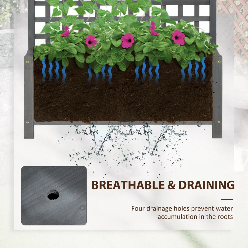Wood Planter With Trellis For Vine Climbing, Raised Garden Bed, Privacy Screen For Backyard, Patio, Dark Gray