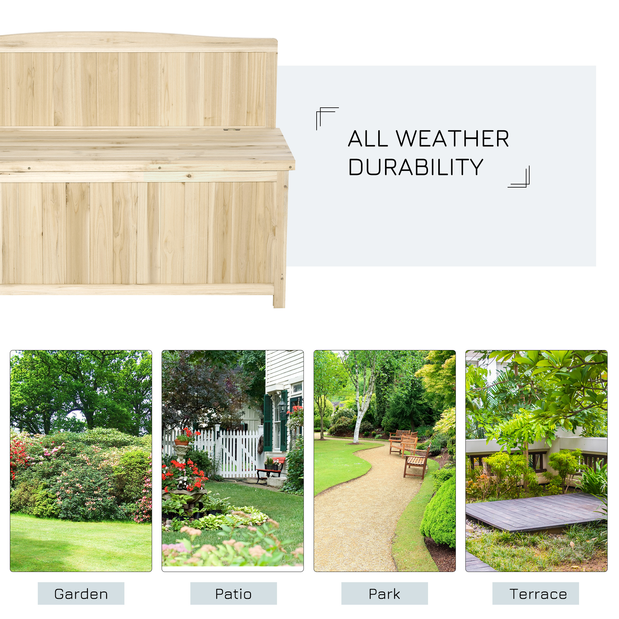 This garden storage bench gives you a place to relax and space for keeping your outdoor essentials stored. The varnished surface protects the fir wood structure against weathering so the park bench lasts longer outdoors. The ergonomic shape of the bench allows you to sit comfortably, with its maximum 250kg bearing weight allowing wooden bench to hold up to two people. No garden is complete without this handy garden bench with storage.
