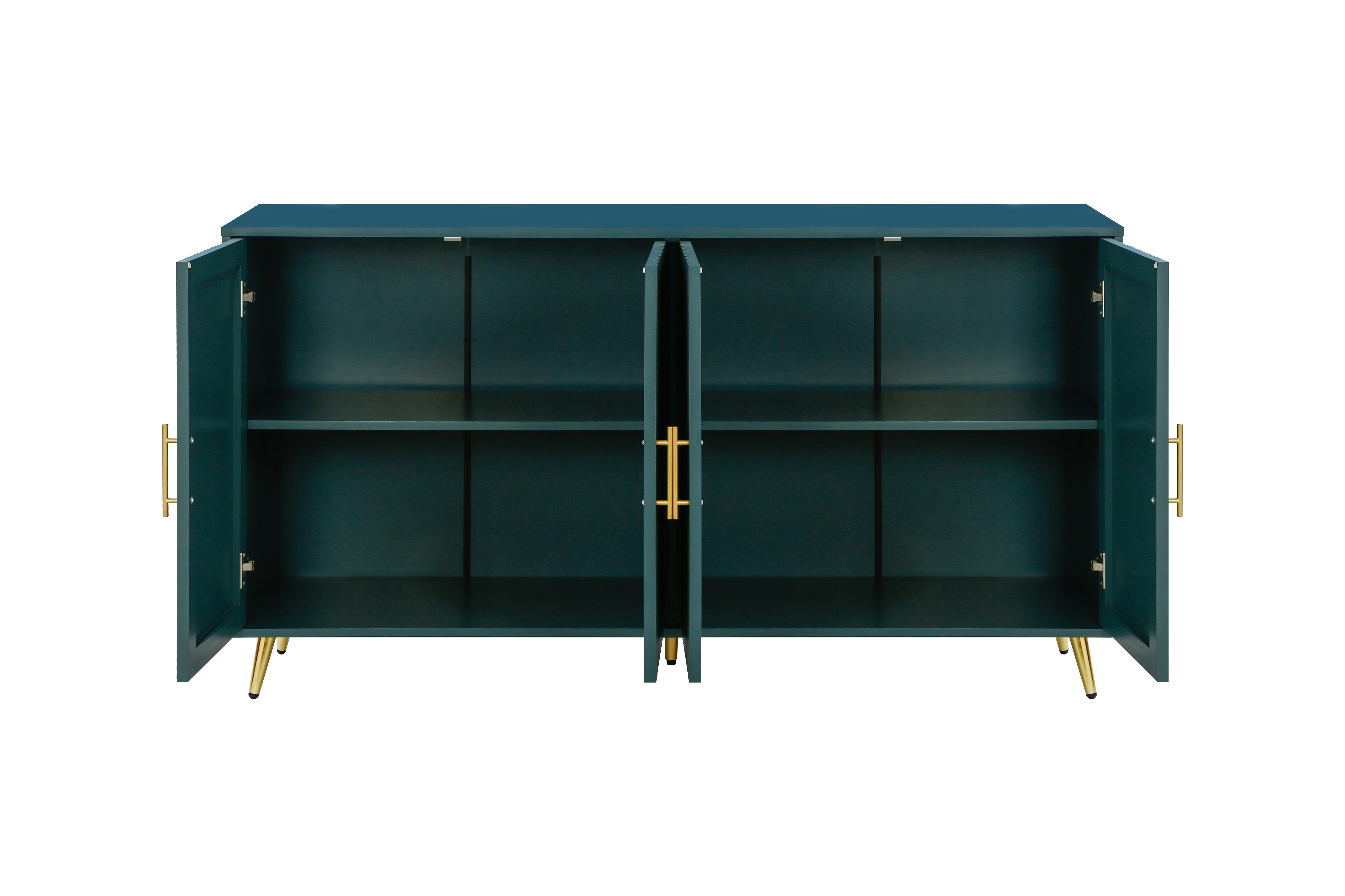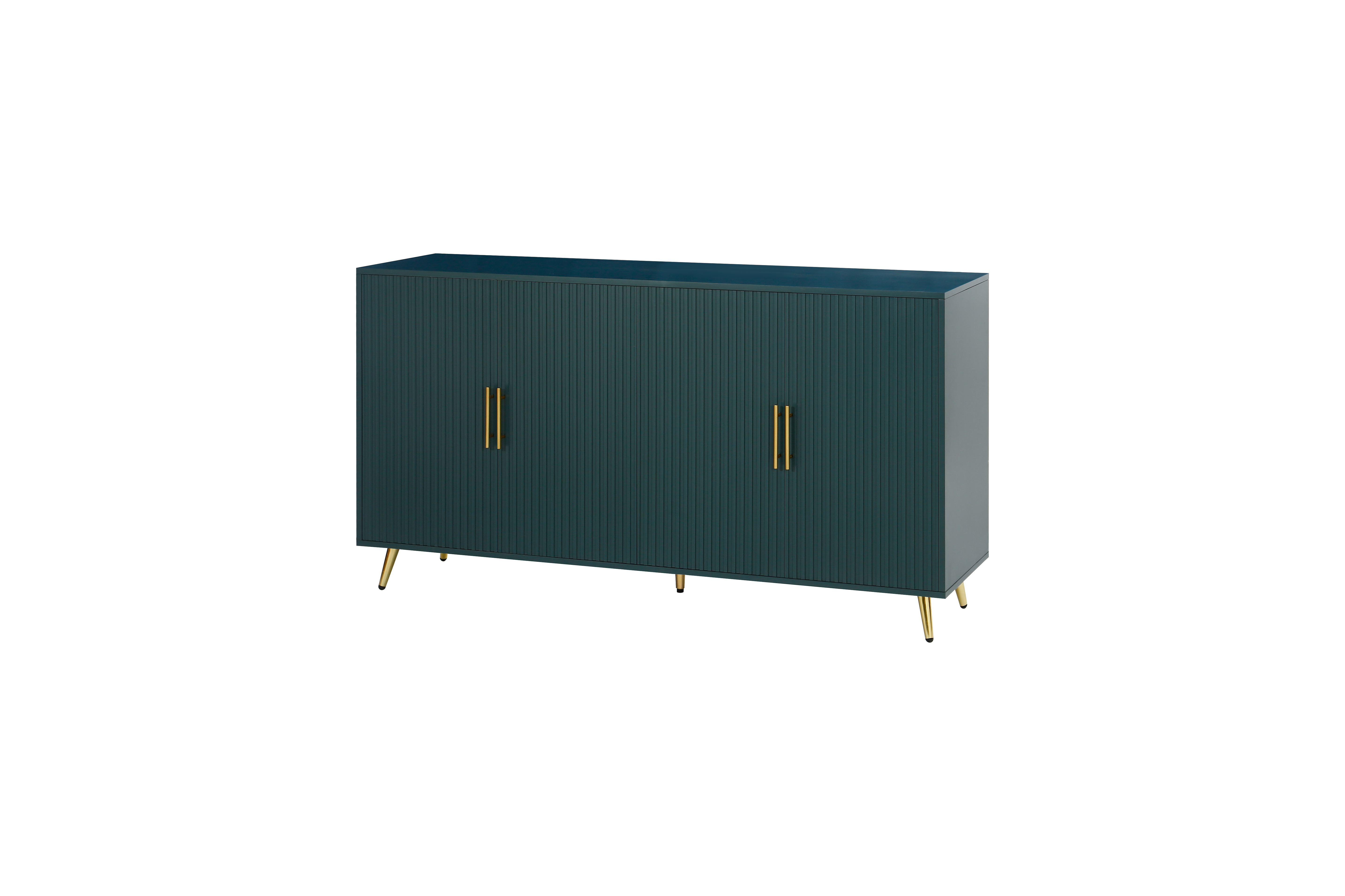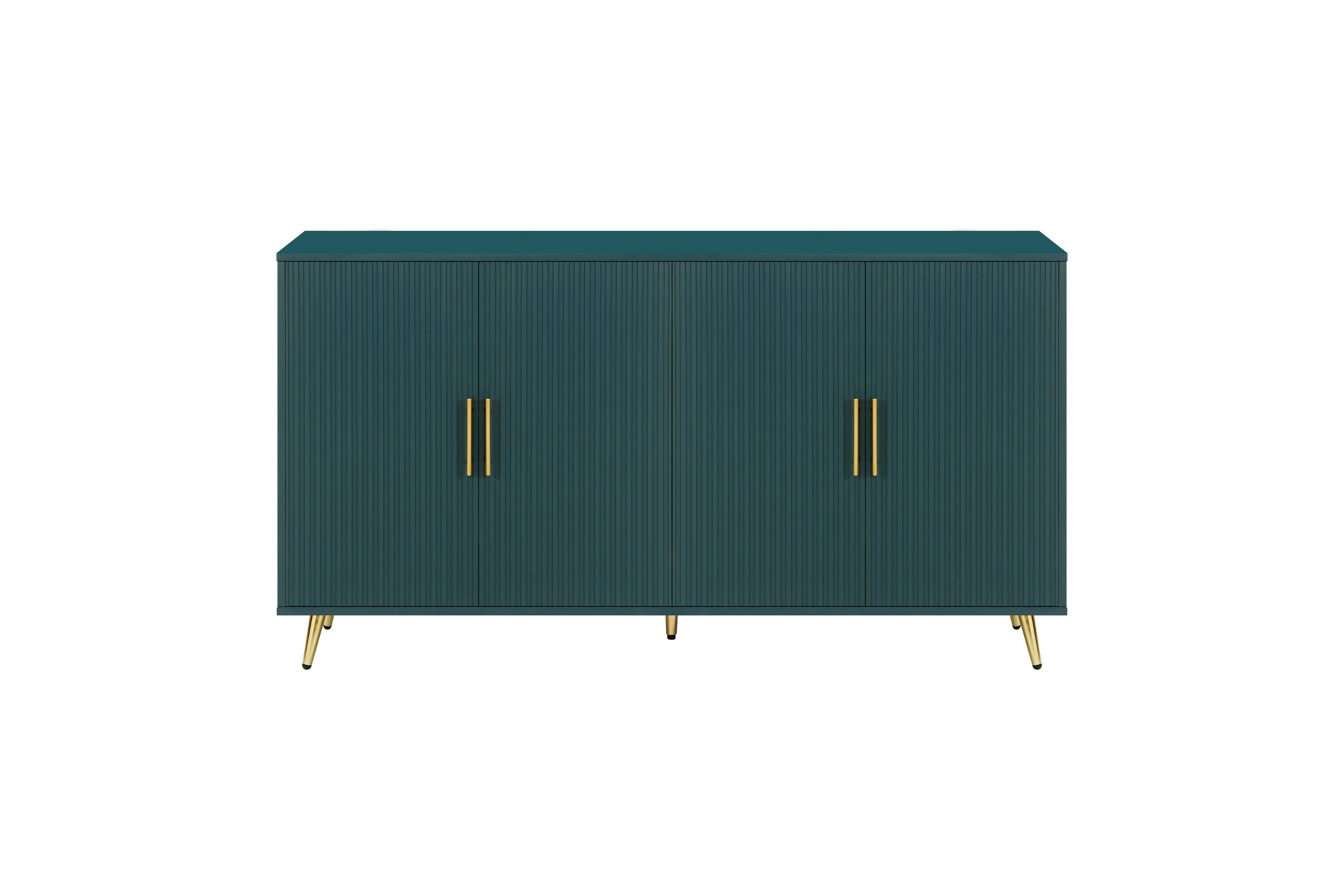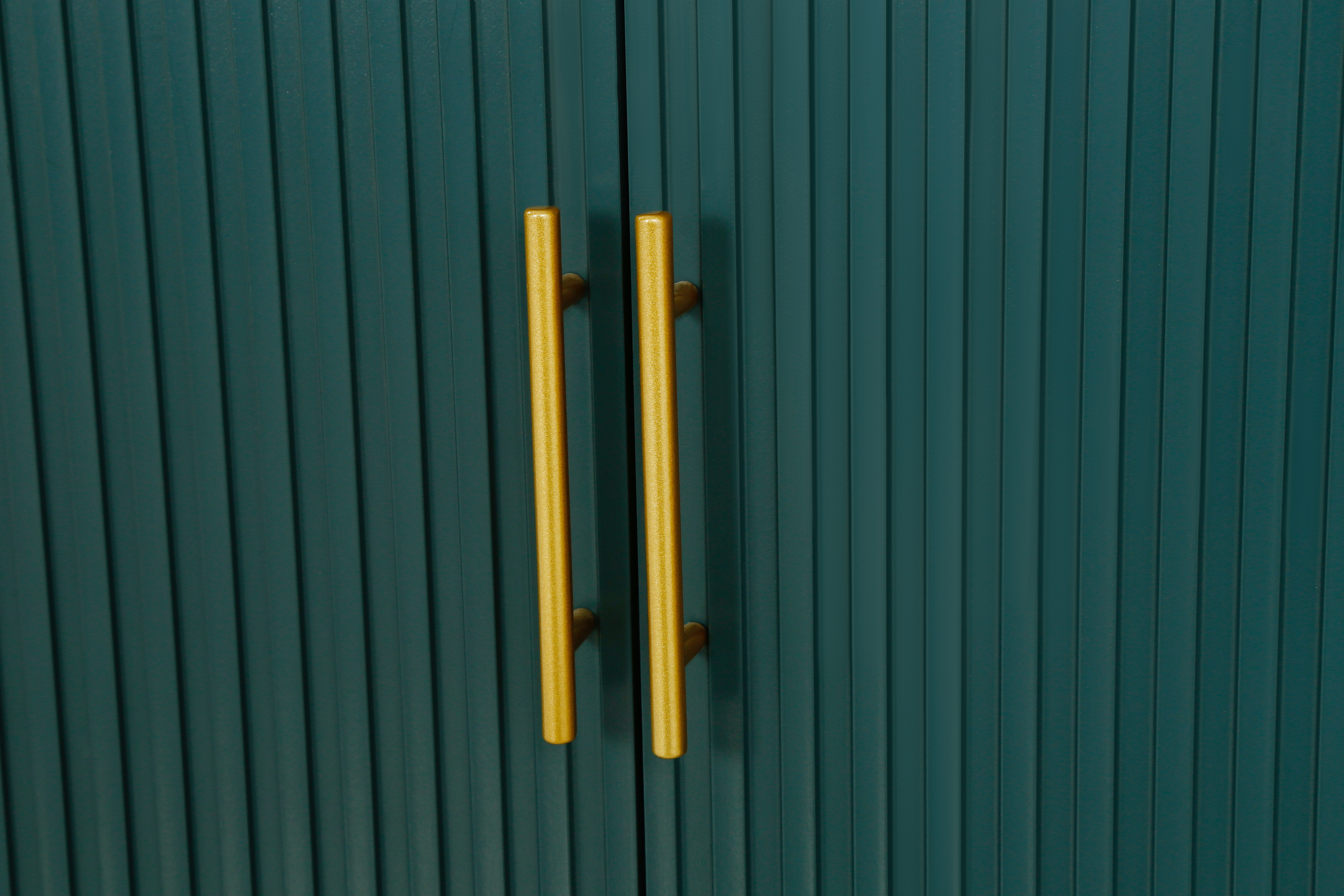 Green four-door cabinet using high-grade paint, after fine manual processing, the overall show a more advanced texture. This treatment method not only makes the appearance of the cabinet more smooth, but also increases its visual appeal. The four doors of the cabinet are designed with vertical lines, and the use of this line gives the overall effect a unique feeling These vertical lines not only play a decorative role, but also enhance the three-dimensional and layered sense of the cabinet whether placed in the living room bedroom or office space, this design can bring a fashion and modern sense to the entire environment through the use of advanced paint, the surface of the cabinet shows a glossy sense, making it more durable and easy to clean At the same time, the choice of paint color is also very important. The choice of blue can not only reflect the personality and taste of the cabinet, but also form a harmonious match with the surrounding decorative elements. The use of this color makes the whole cabinet more fashionable and delicate