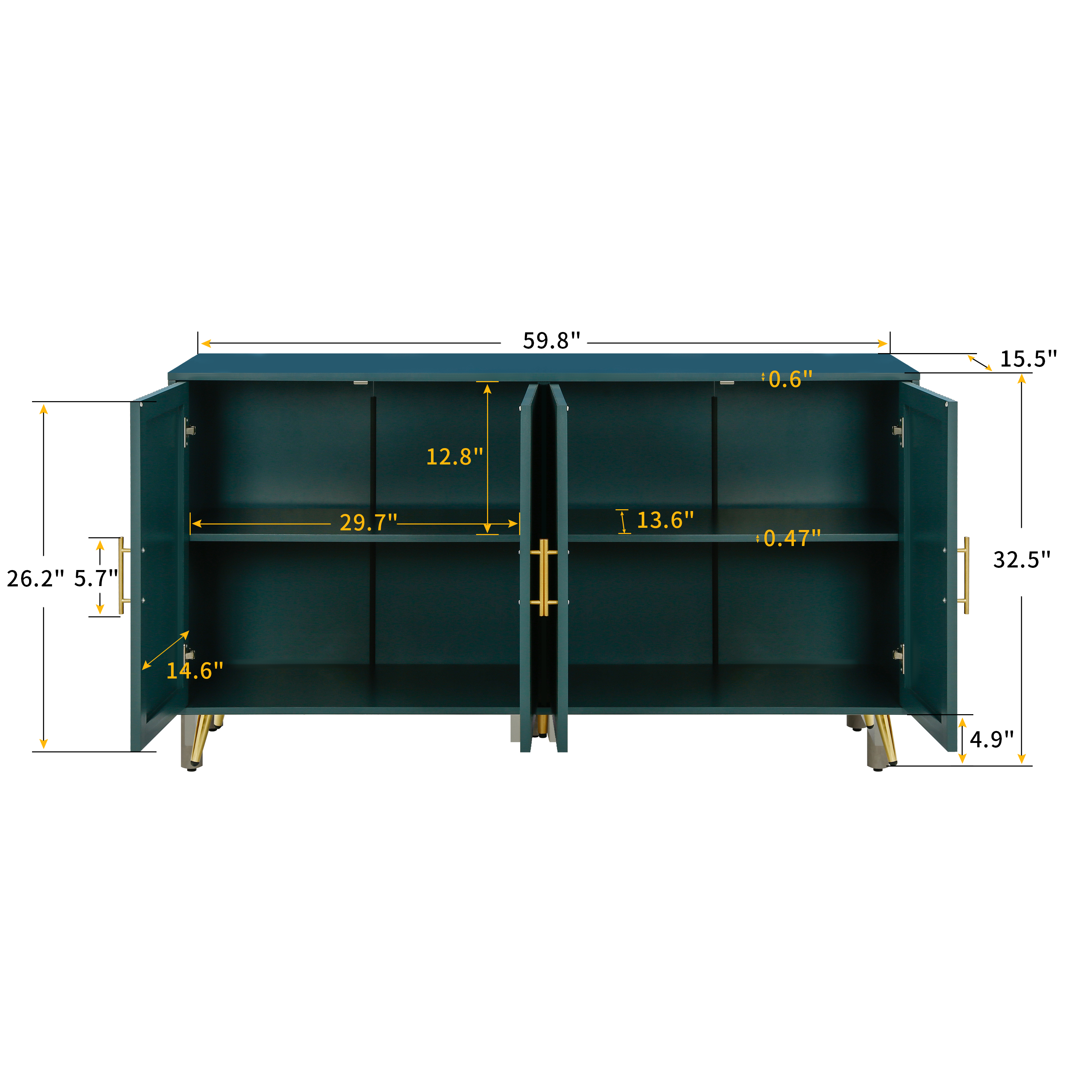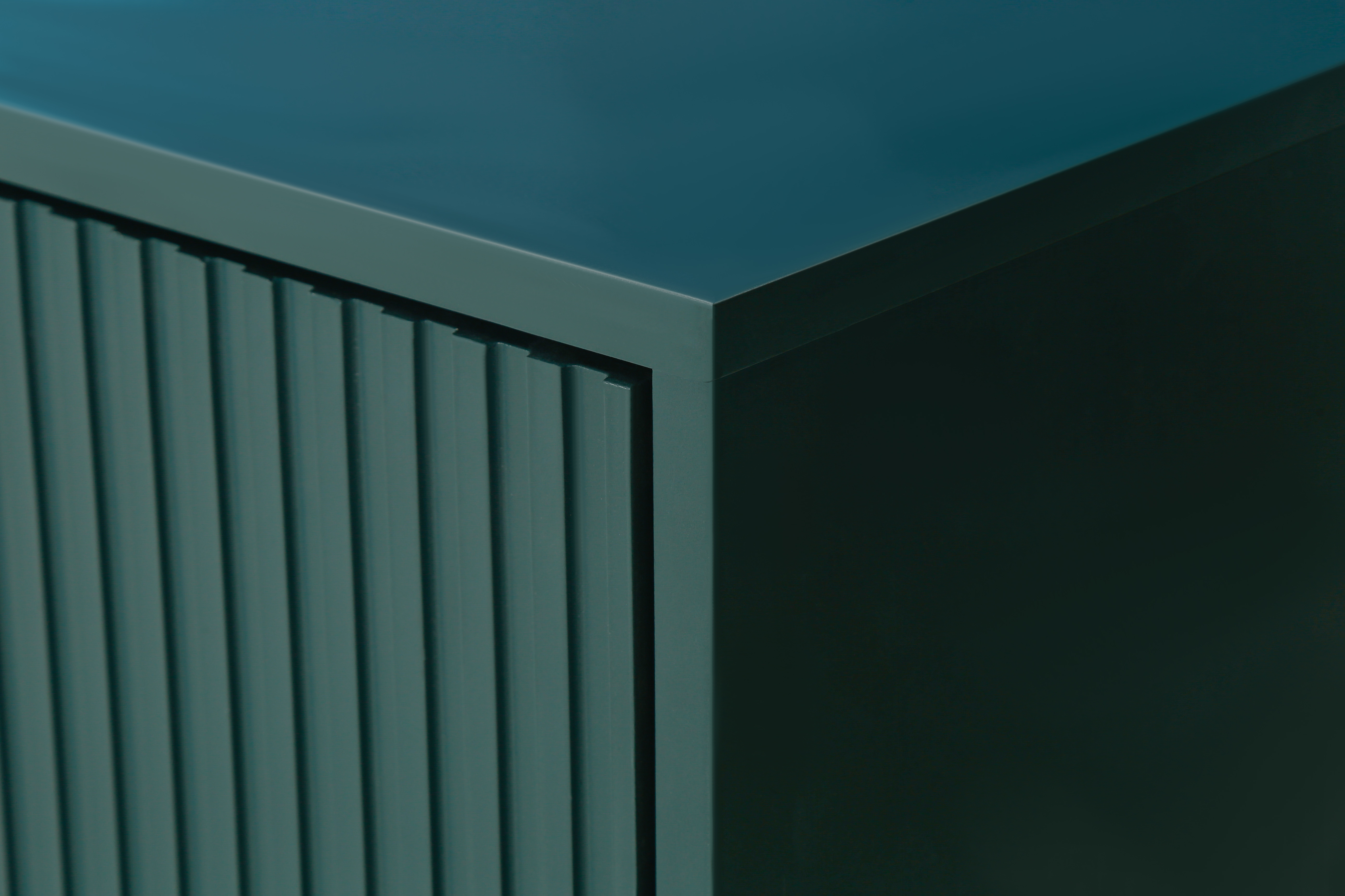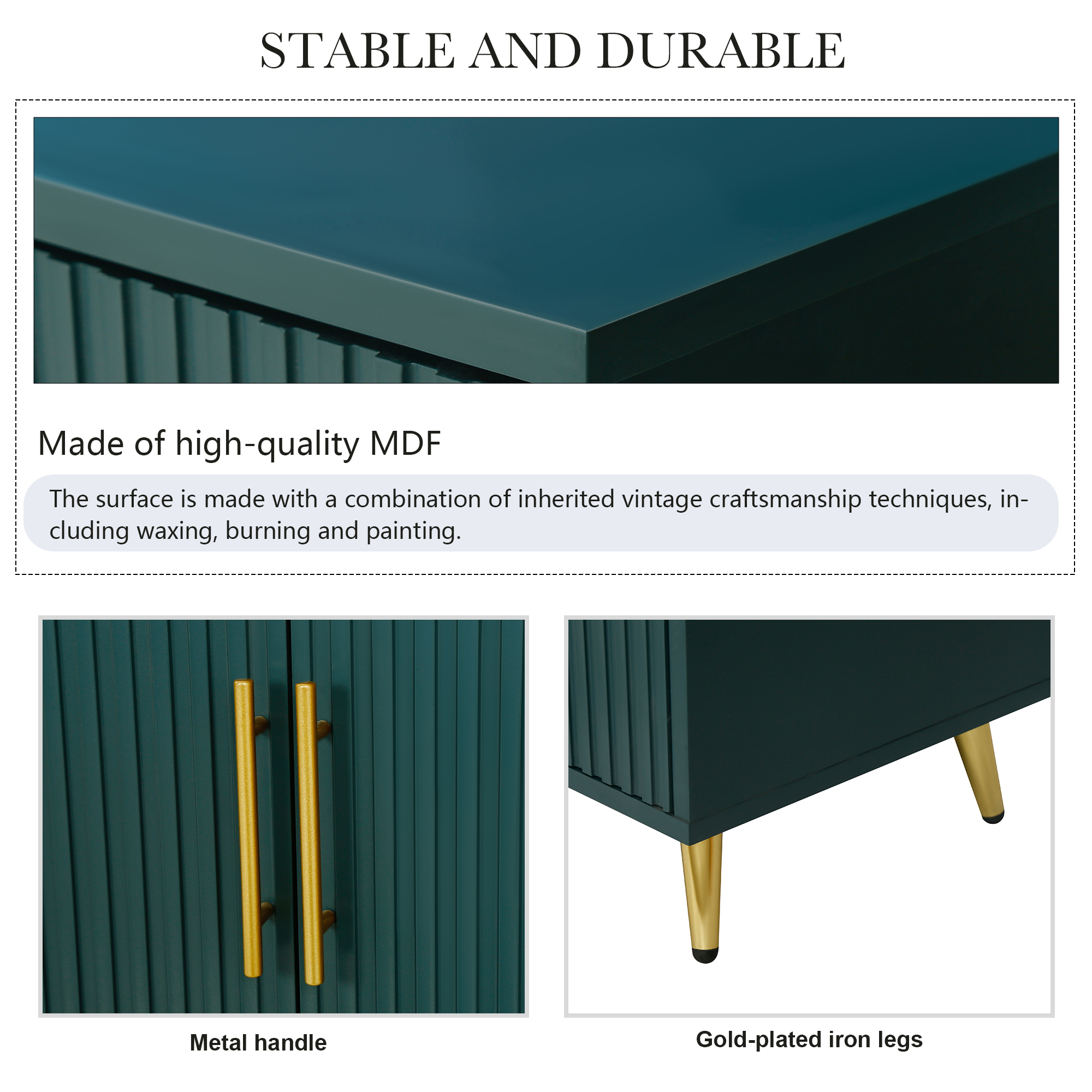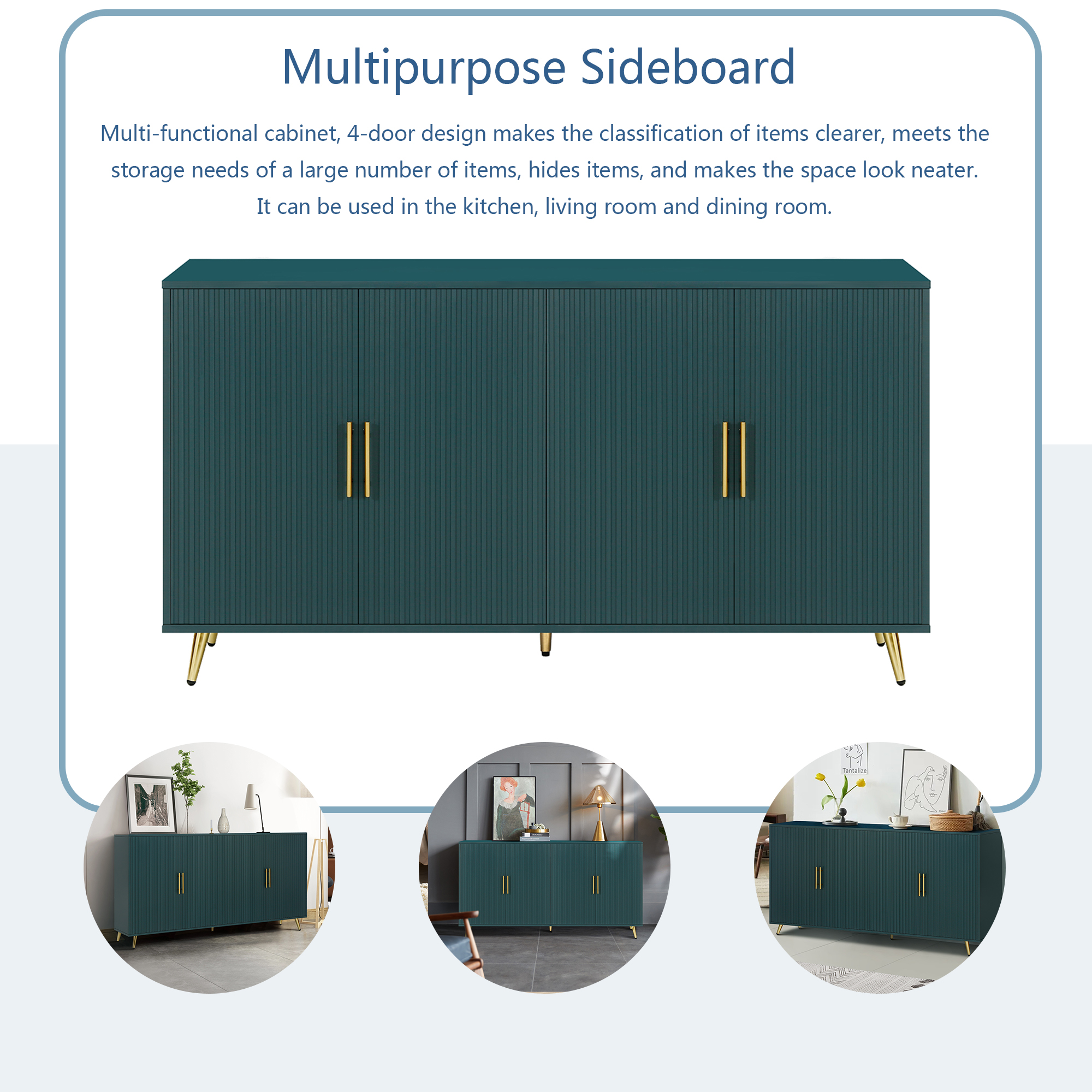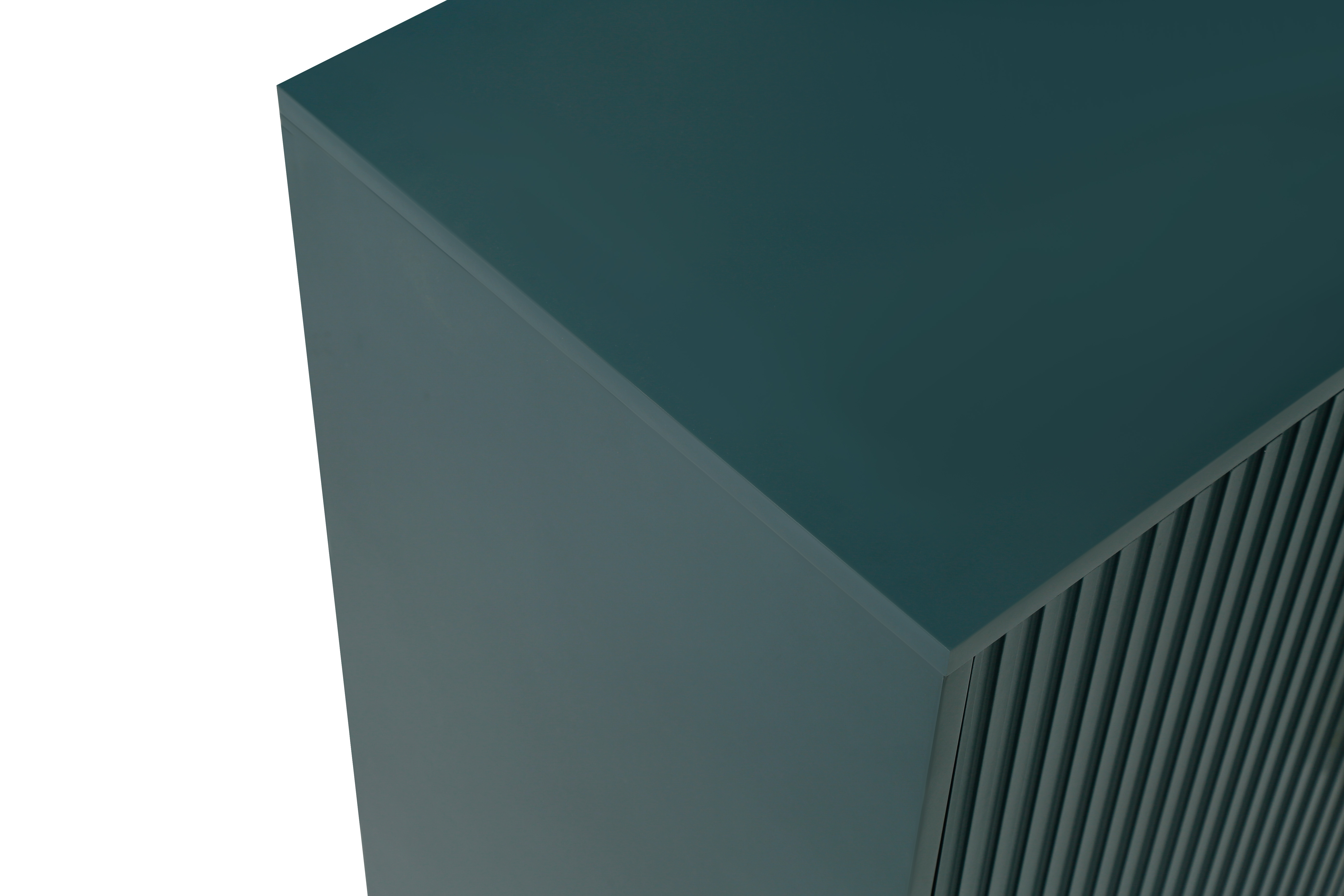 Green four-door cabinet using high-grade paint, after fine manual processing, the overall show a more advanced texture. This treatment method not only makes the appearance of the cabinet more smooth, but also increases its visual appeal. The four doors of the cabinet are designed with vertical lines, and the use of this line gives the overall effect a unique feeling These vertical lines not only play a decorative role, but also enhance the three-dimensional and layered sense of the cabinet whether placed in the living room bedroom or office space, this design can bring a fashion and modern sense to the entire environment through the use of advanced paint, the surface of the cabinet shows a glossy sense, making it more durable and easy to clean At the same time, the choice of paint color is also very important. The choice of blue can not only reflect the personality and taste of the cabinet, but also form a harmonious match with the surrounding decorative elements. The use of this color makes the whole cabinet more fashionable and delicate
