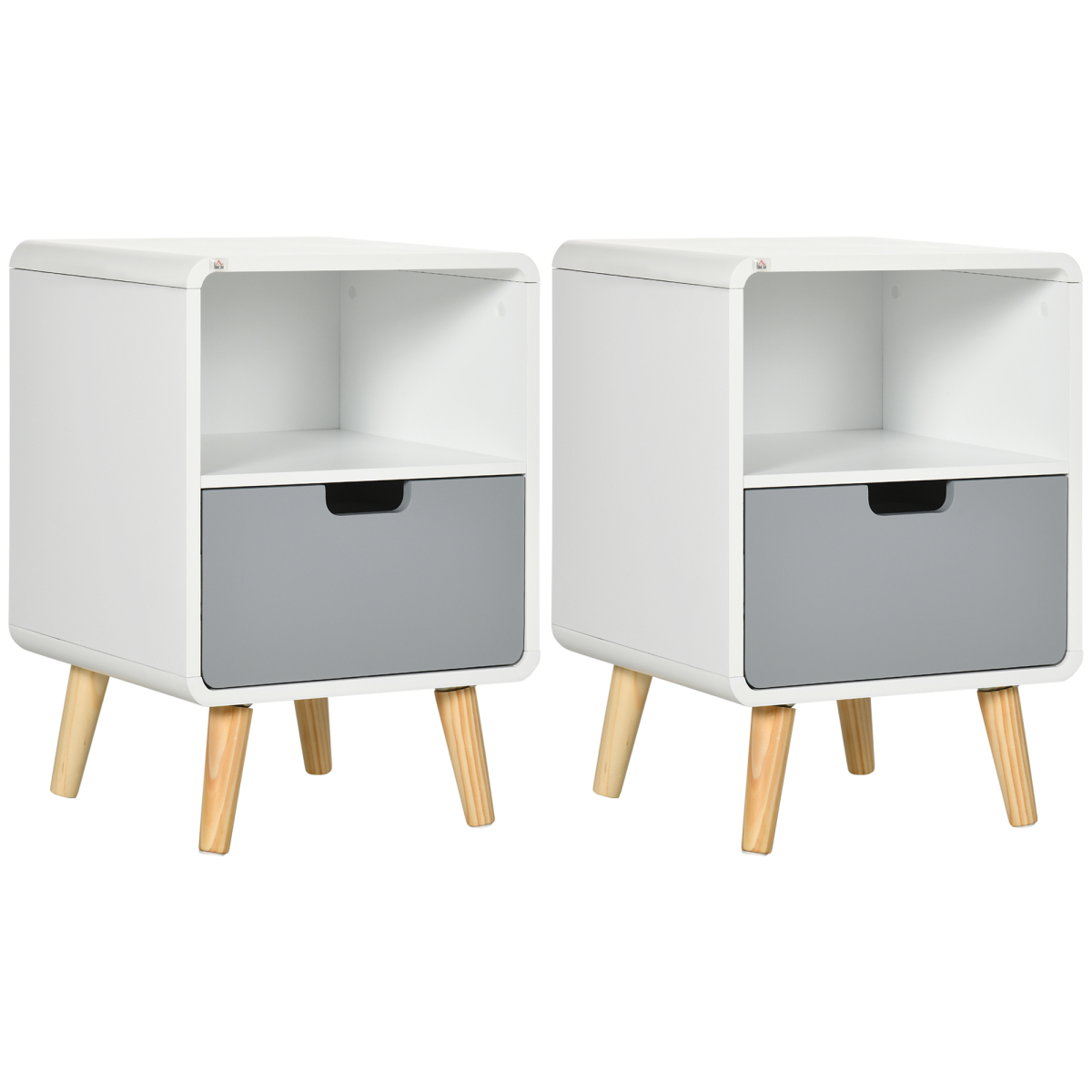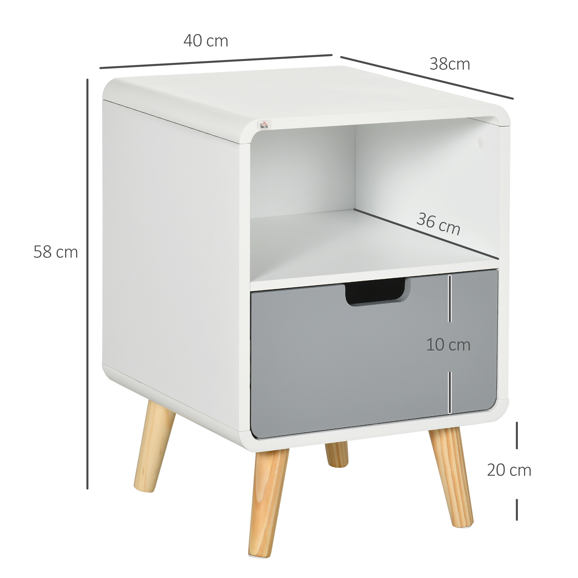 This classic Scandinavian styled living room table from is a perfect addition for your bedroom. Made from pine wood and MDF for long term use. Features a small open shelf and a grey lower drawer, providing sufficient space for your daily essentials. Easy to clean and maintain with painted surface.. This bedside table can be used as a sofa table, night stand, corner table etc. Bring style and functionality to your home with this wooden night stand!
