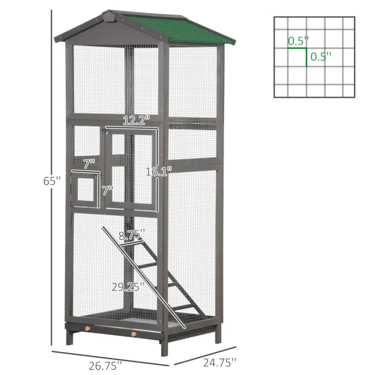 Wooden Bird Cage Outdoor Aviary House For Parrot, Parakeet, With Pull Out Tray And 2 Doors, Grey