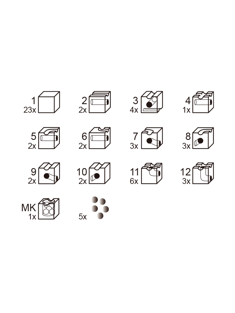 Content: 54 building blocks+5 marbles