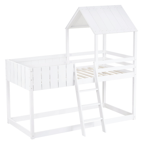 A wobbly loft bed/bunk bed is a great headache for most parents. Different from most bunk beds supported by only four legs, the bottom of this bed is surrounded by wooden slats, which greatly improves the stability of the bed and solves the shaking problem of most bunk beds. In general, this house bed can not only satisfy the children's preferences but also reduce your worries about their safety when sleeping.