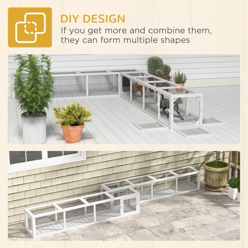- Allows an L shape, expansion from the left and right, or even a cat tent or a catio at the end
