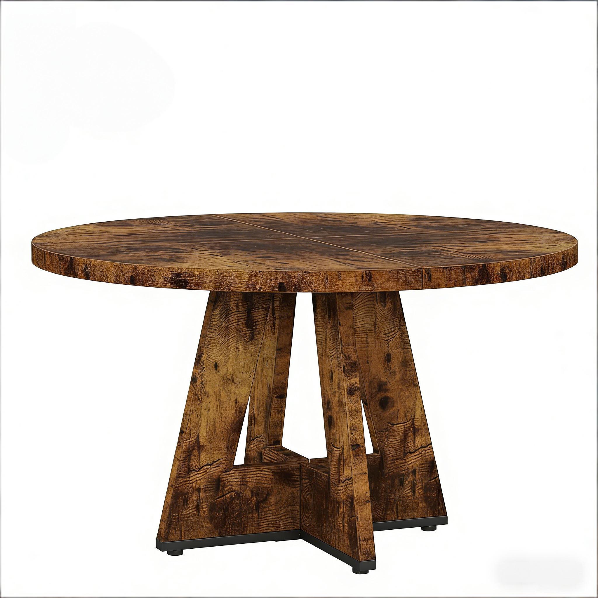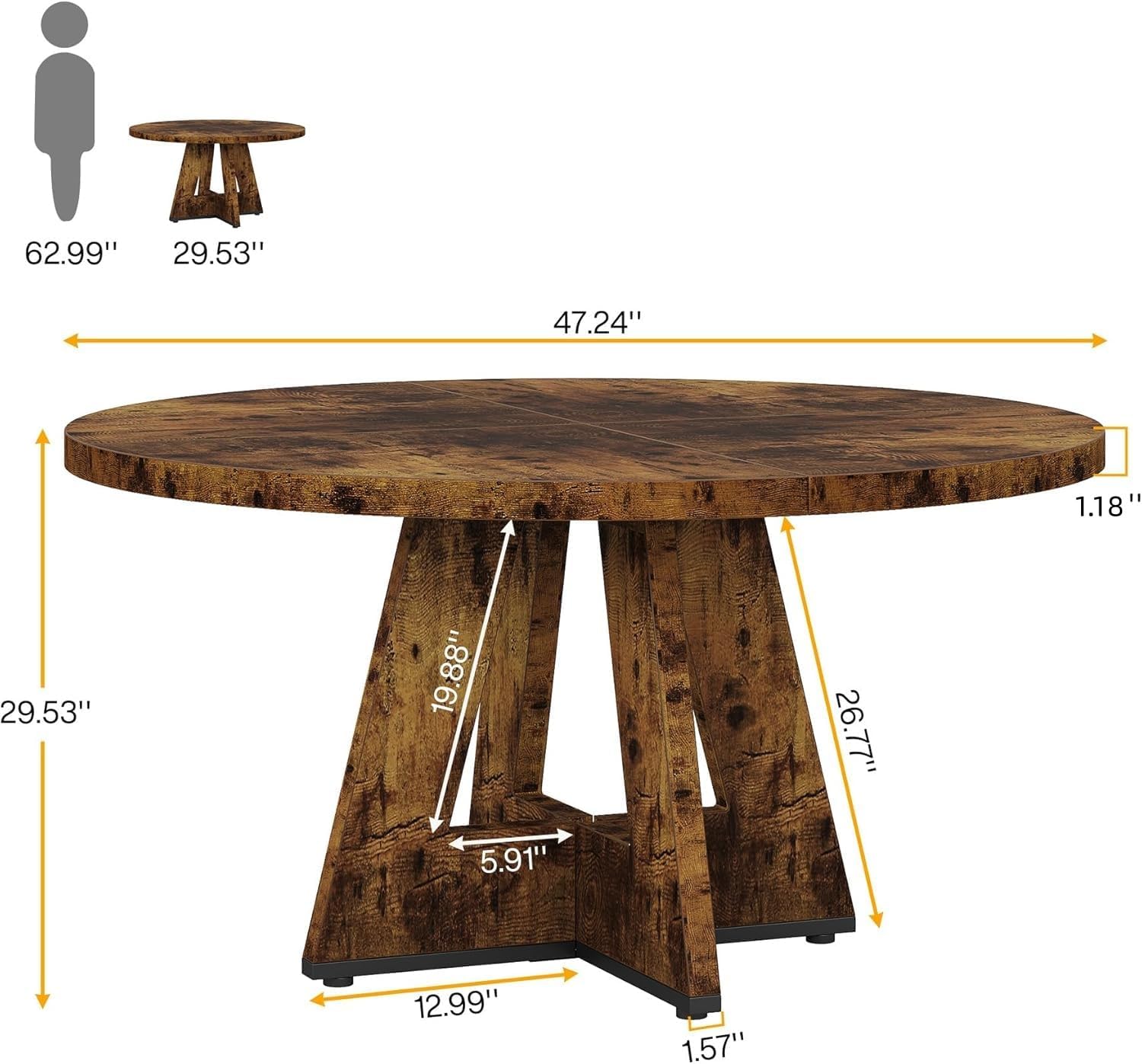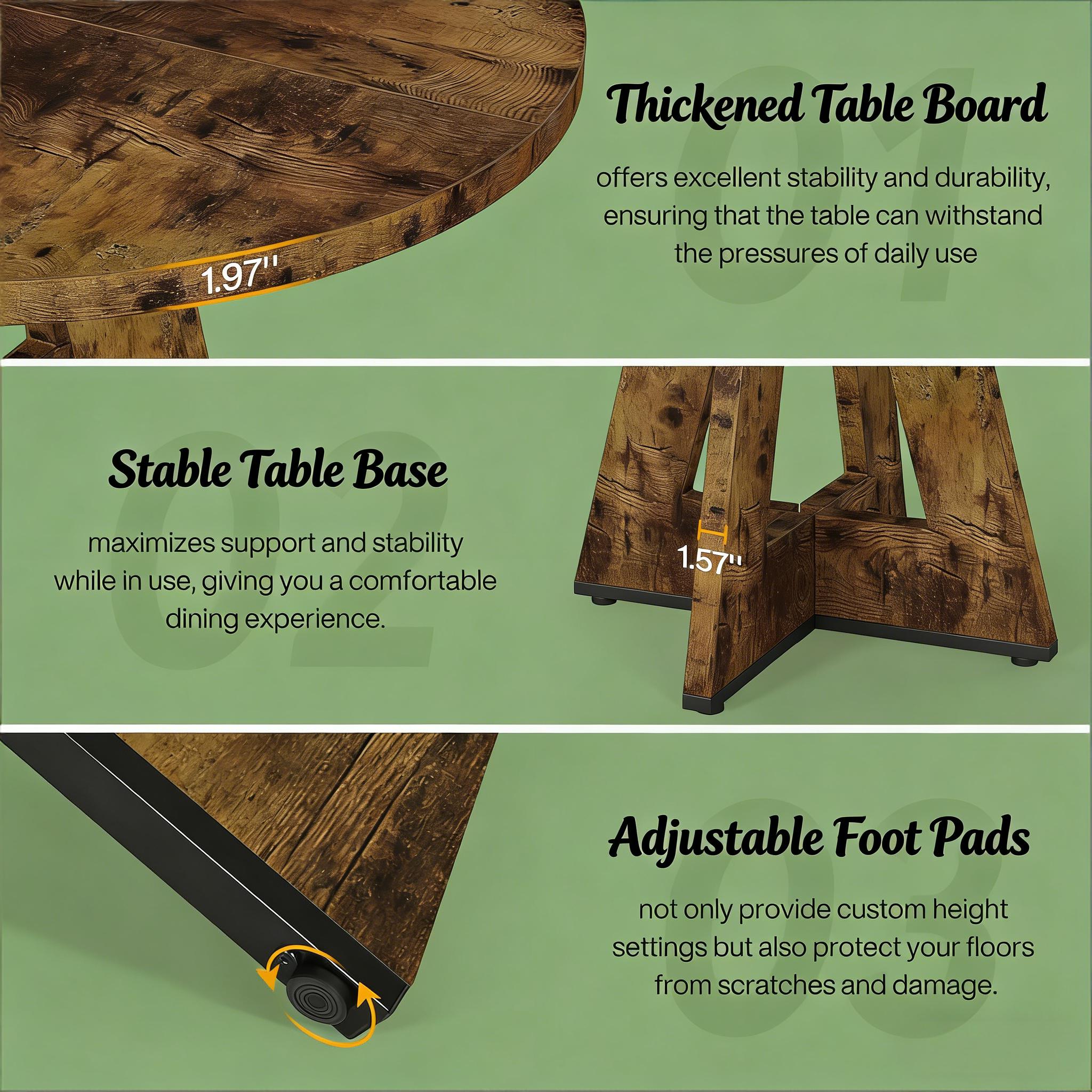 Important Reminder!!! 1) Attention: All products in our store do not support Canada self pickup ordering. Please do not create shipping labels for Canada. Our American products do not support self pickup to Canada 2)We do not ship to Alaska, Hawaii, US protectorates (e.g., Puerto Rico), P.O. boxes, or APO/FPO addresse 3)We don’t accept non-defective remorse returns Farmhouse Design - The wooden round kitchen dining table exhibits a charming farmhouse look and warm retro brown color, adding rustic elegance to any room. Accommodates Four - With its spacious 47-inch tabletop, this round dining table comfortably seats 4 people, perfect for dinner parties or family meals. Sturdy Construction - Built from high-quality thick MDF, this table is durable, waterproof, scratch-proof, and easy to clean, promising long-lasting usability. Practical Usage - In addition to dining, this rustic round dining table can serve as a study or work table or as a striking centerpiece in your living room, showcasing its versatile design. Easy to Assemble - Comes with clear instructions and necessary hardware, this table is easy to assemble. We are here to assist with any queries about the rustic round dining table.