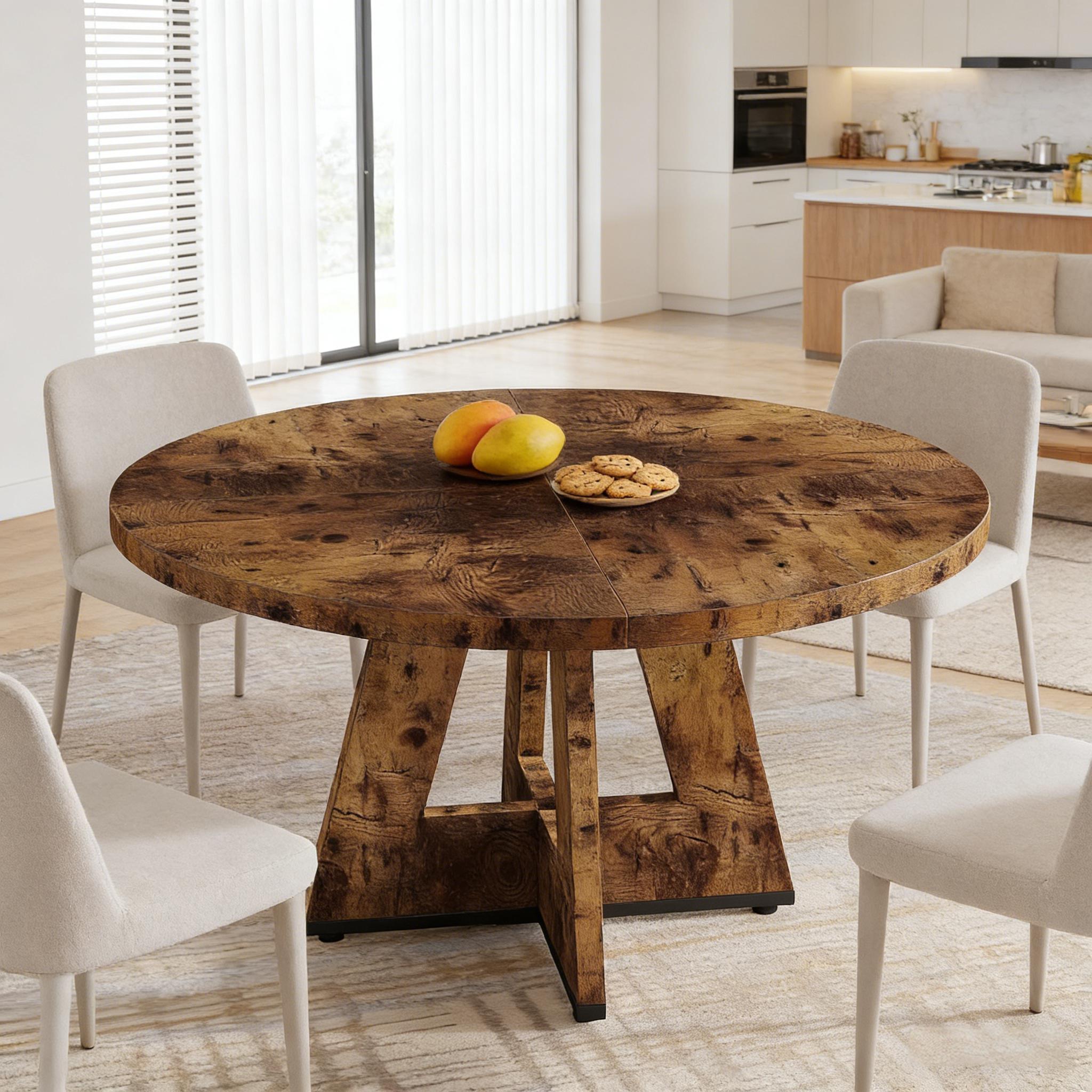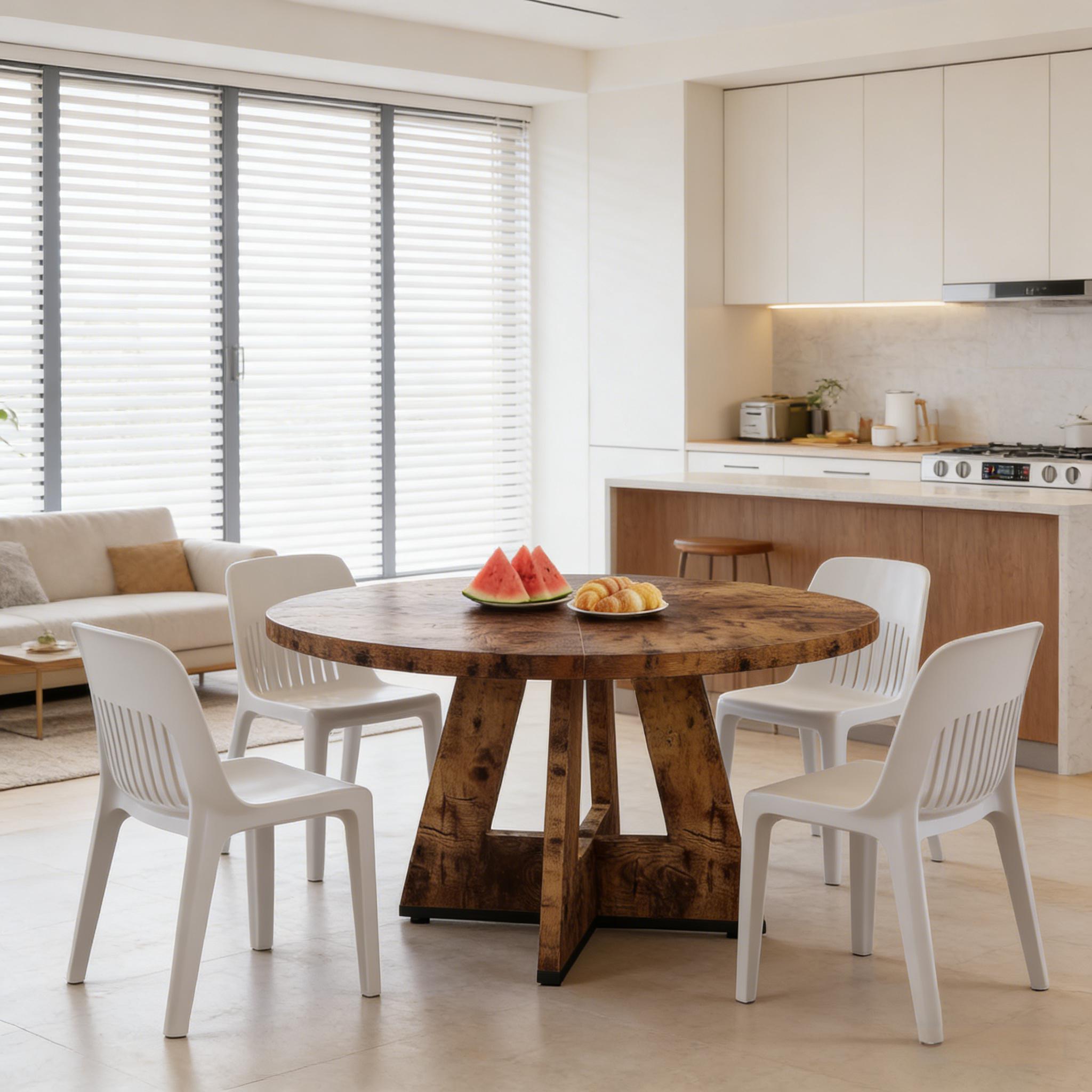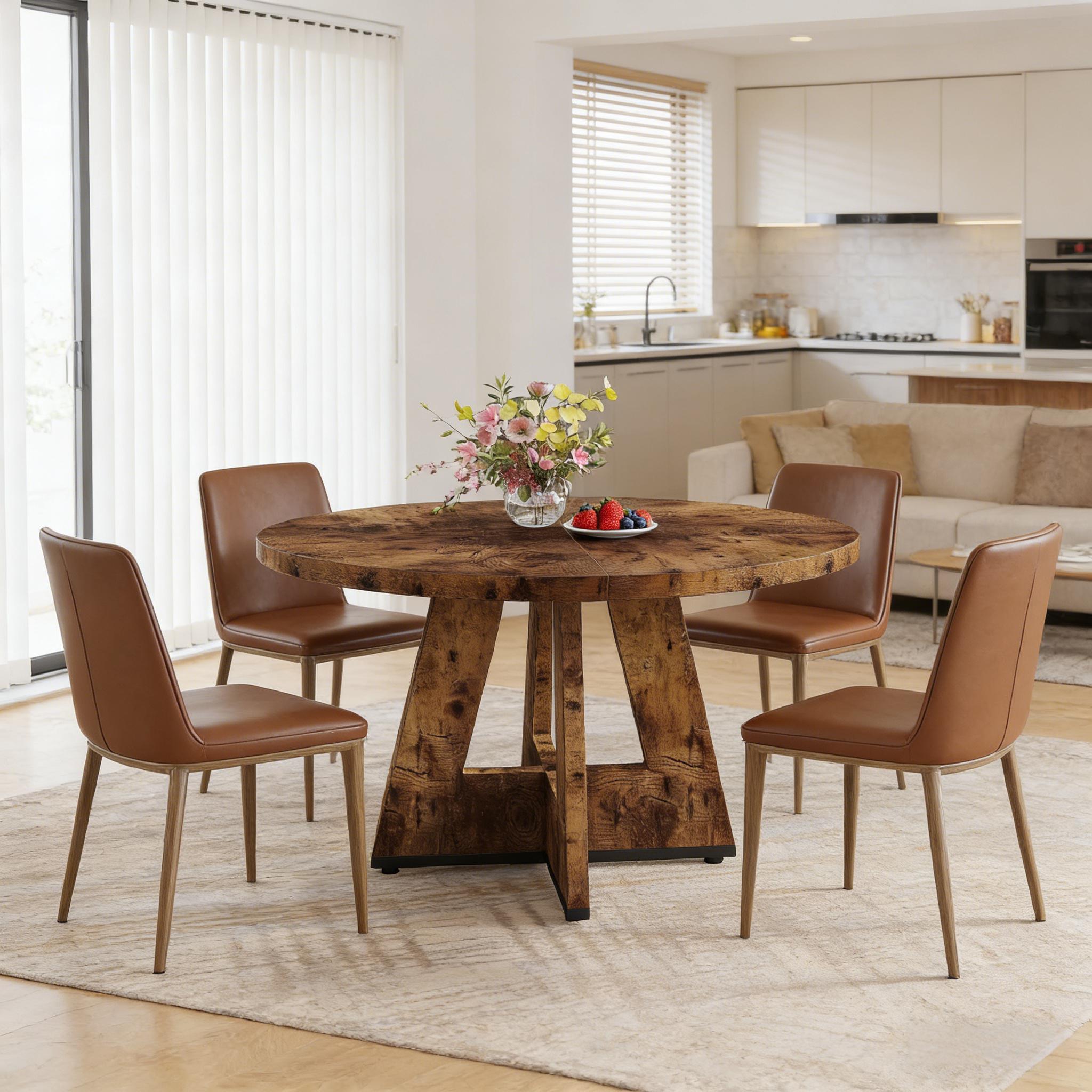 Important Reminder!!! 1) Attention: All products in our store do not support Canada self pickup ordering. Please do not create shipping labels for Canada. Our American products do not support self pickup to Canada 2)We do not ship to Alaska, Hawaii, US protectorates (e.g., Puerto Rico), P.O. boxes, or APO/FPO addresse 3)We don’t accept non-defective remorse returns Farmhouse Design - The wooden round kitchen dining table exhibits a charming farmhouse look and warm retro brown color, adding rustic elegance to any room. Accommodates Four - With its spacious 47-inch tabletop, this round dining table comfortably seats 4 people, perfect for dinner parties or family meals. Sturdy Construction - Built from high-quality thick MDF, this table is durable, waterproof, scratch-proof, and easy to clean, promising long-lasting usability. Practical Usage - In addition to dining, this rustic round dining table can serve as a study or work table or as a striking centerpiece in your living room, showcasing its versatile design. Easy to Assemble - Comes with clear instructions and necessary hardware, this table is easy to assemble. We are here to assist with any queries about the rustic round dining table.