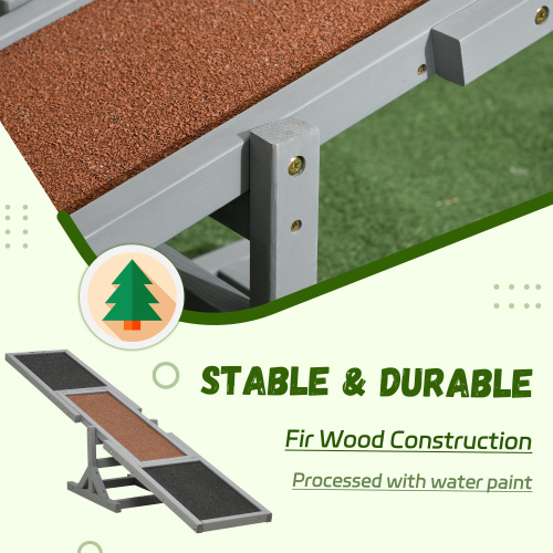 PawHut Wooden Dog Agility Seesaw for Training & Exercise, Platform Equipment Running Play Toy, Weathering Pet Supplies, 71" L x 12" W x 12" H, Gray