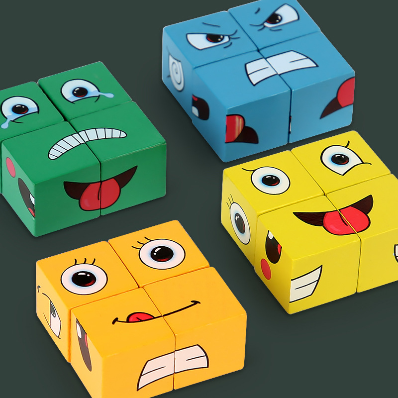 Wooden Double Fighting Face-changing Expression Rubik's Cube Building Blocks
