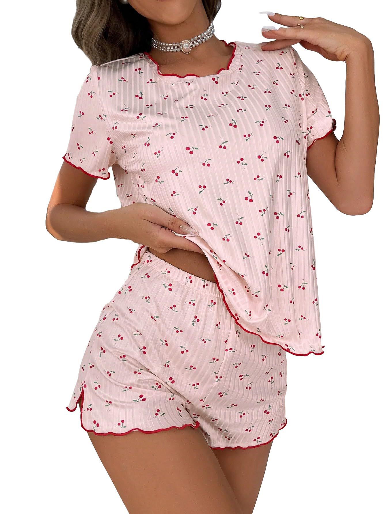 Color: red cherry print on white background, red cherry print on foundation, yellow cherry print on white background