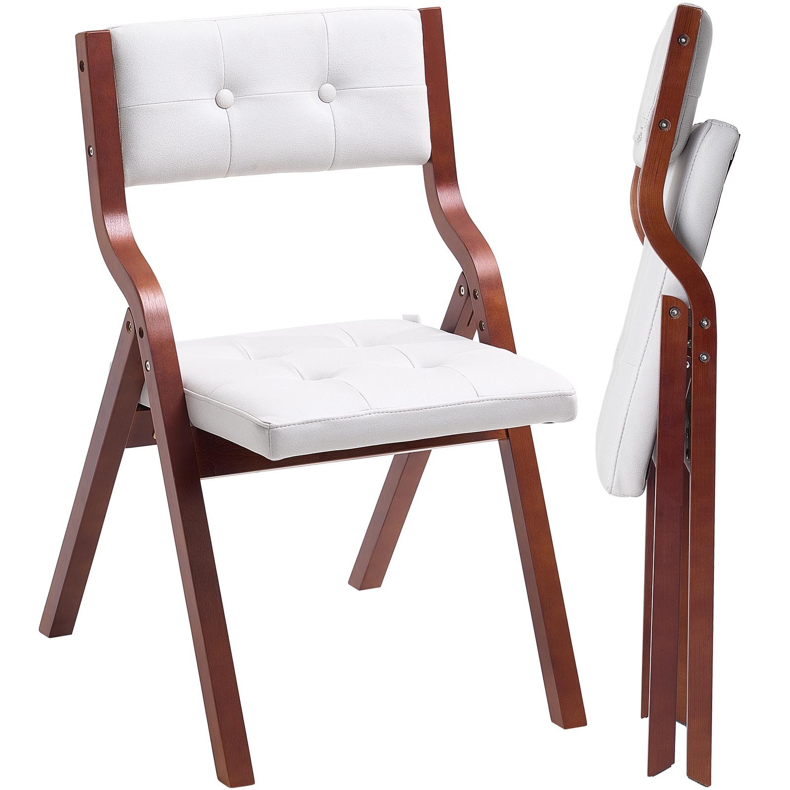 Wooden Folding Chairs With Cushion, Set Of 4, Portable Foldable Cushion Chair With Wooden Frame, Modern Padded Dining Chair For Kitchen, Office, Wedding, Party, Dining Room, Easy Assembly, White