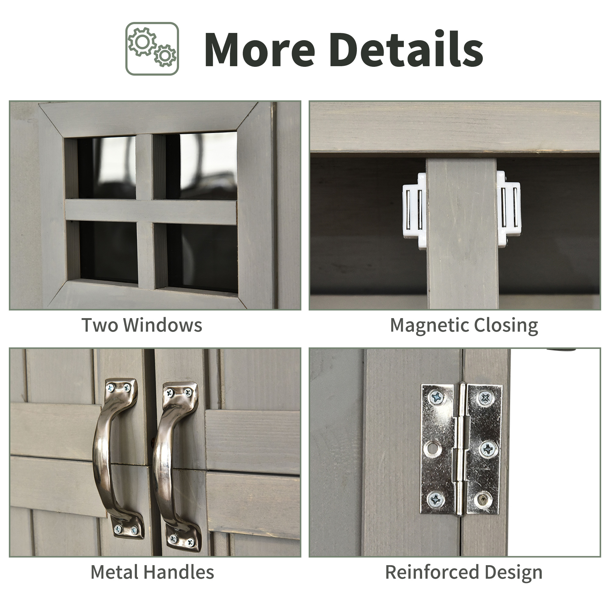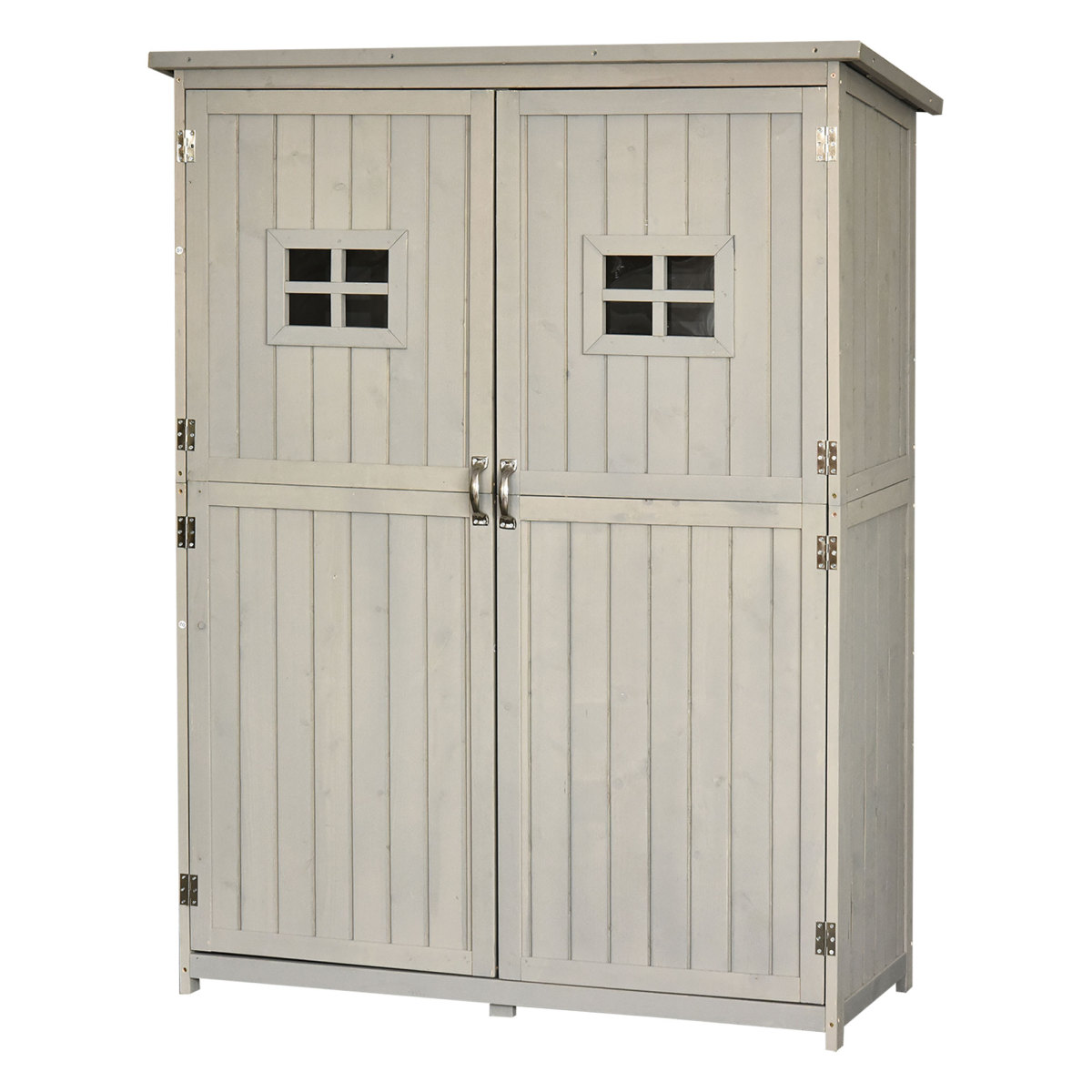 Enhance your gardening endeavors with the outdoor shed, a sanctuary for your tools and equipment. Crafted from solid fir wood, this shed promises durability and strength, while its light grey waterproof coating shields your essentials from the elements. With three shelves on one side and ample open space on the other, it accommodates both small and large items effortlessly. Ideal for tool organization, it adds a touch of elegance to your outdoor space, a must-have for garden lovers.