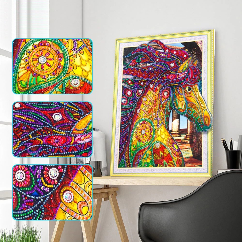 Wooden Horse Special Shape Diamond Painting