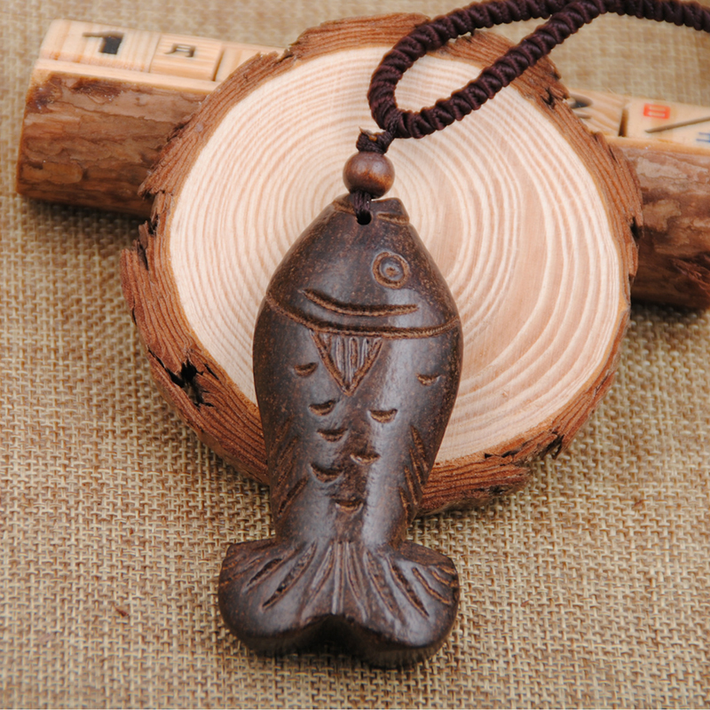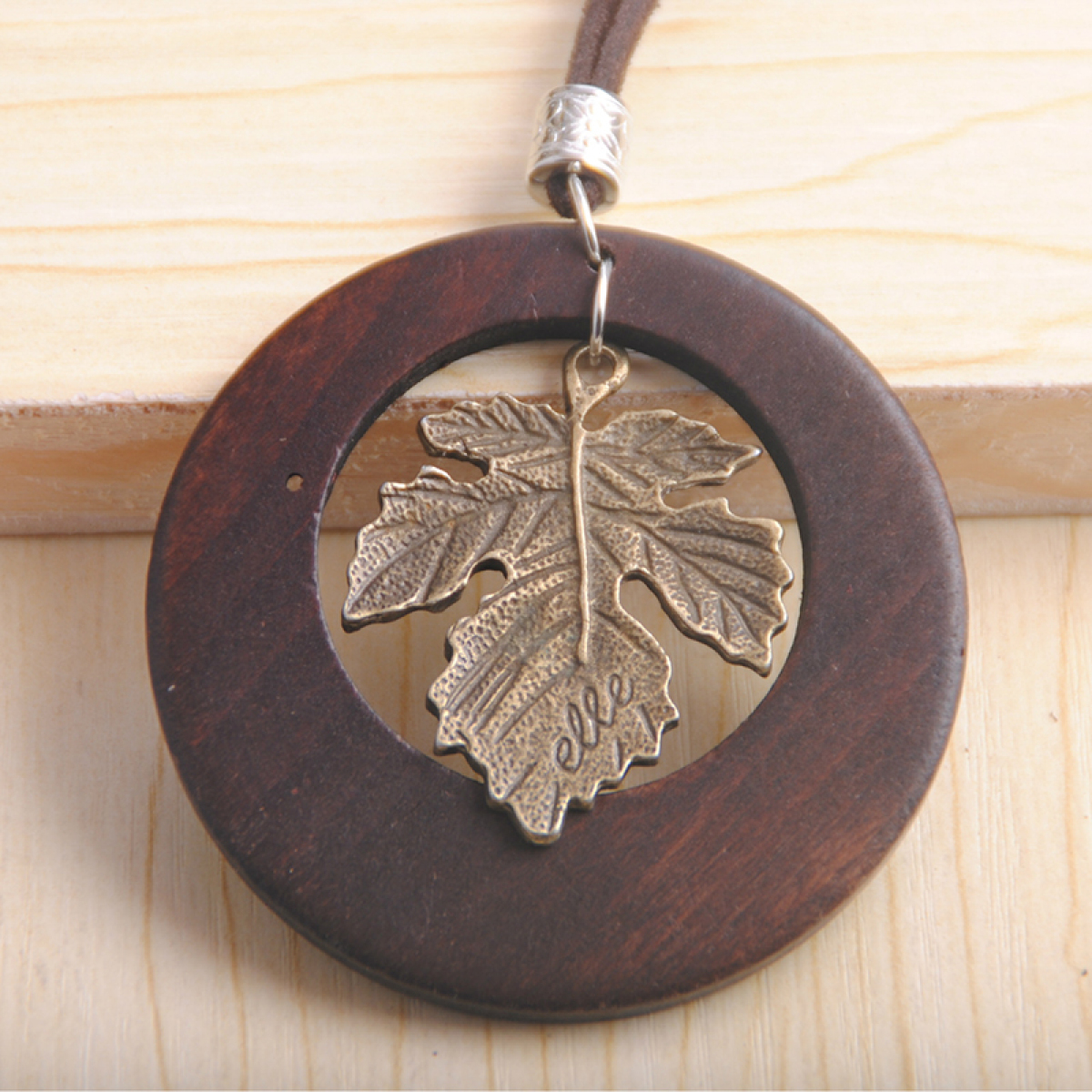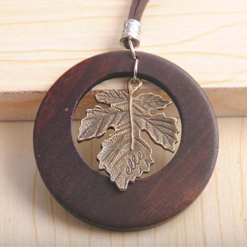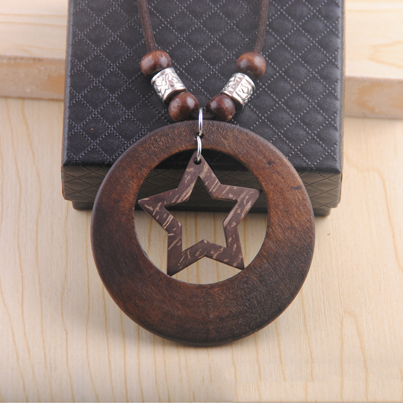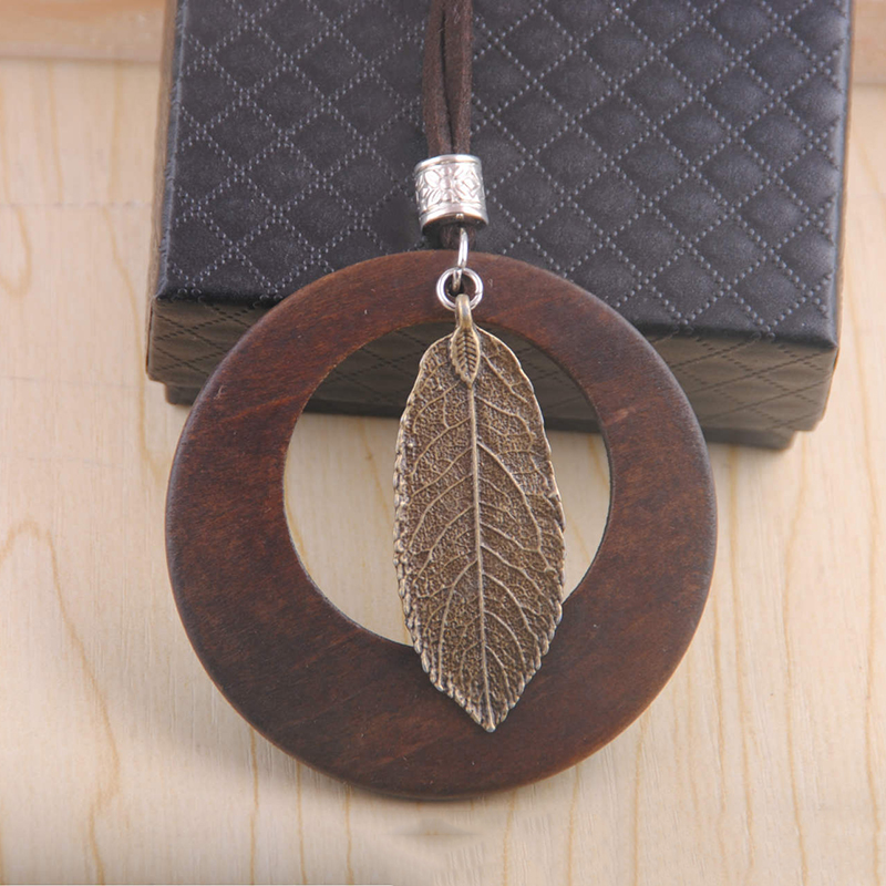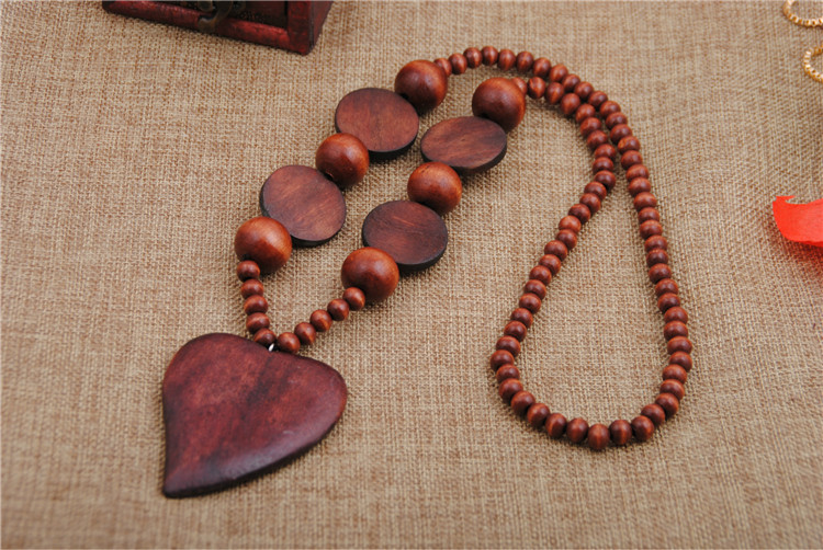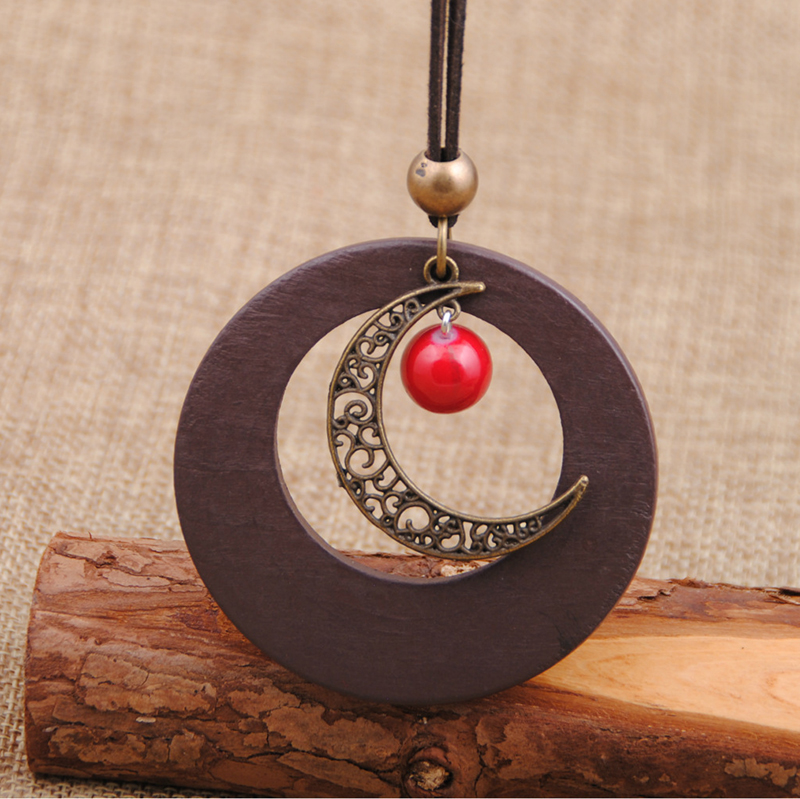 Wooden Jewelry Female Retro Ethnic Style Pendant Sweater Chain Necklace
