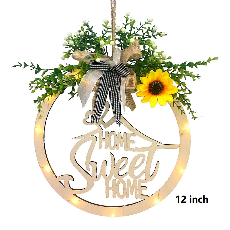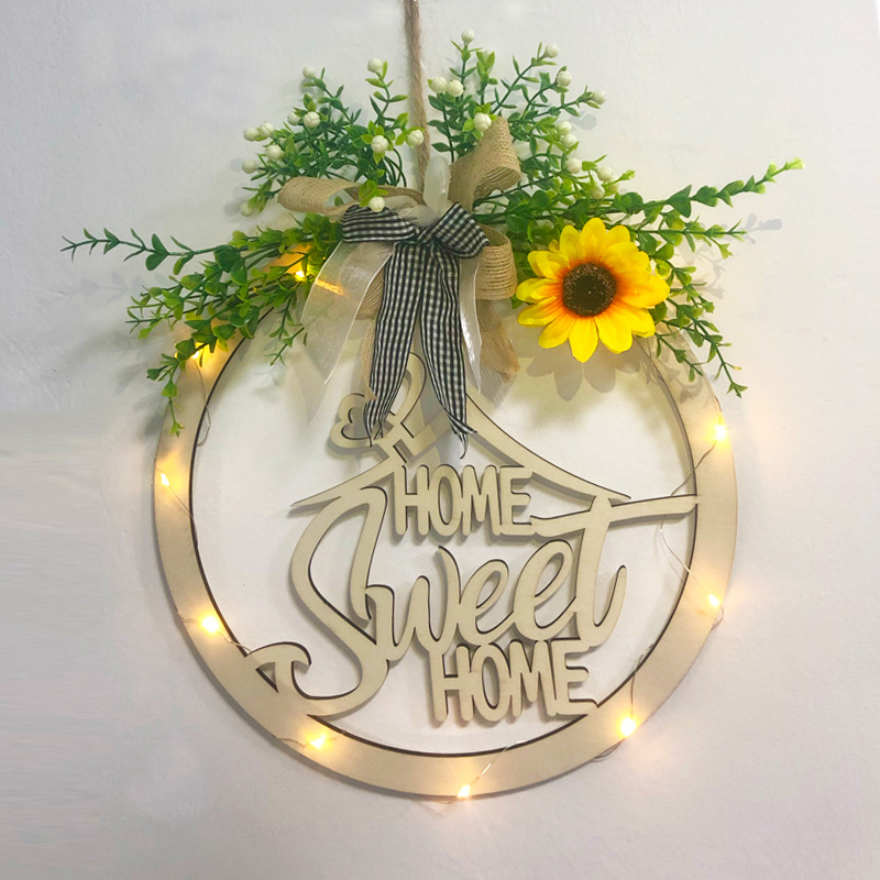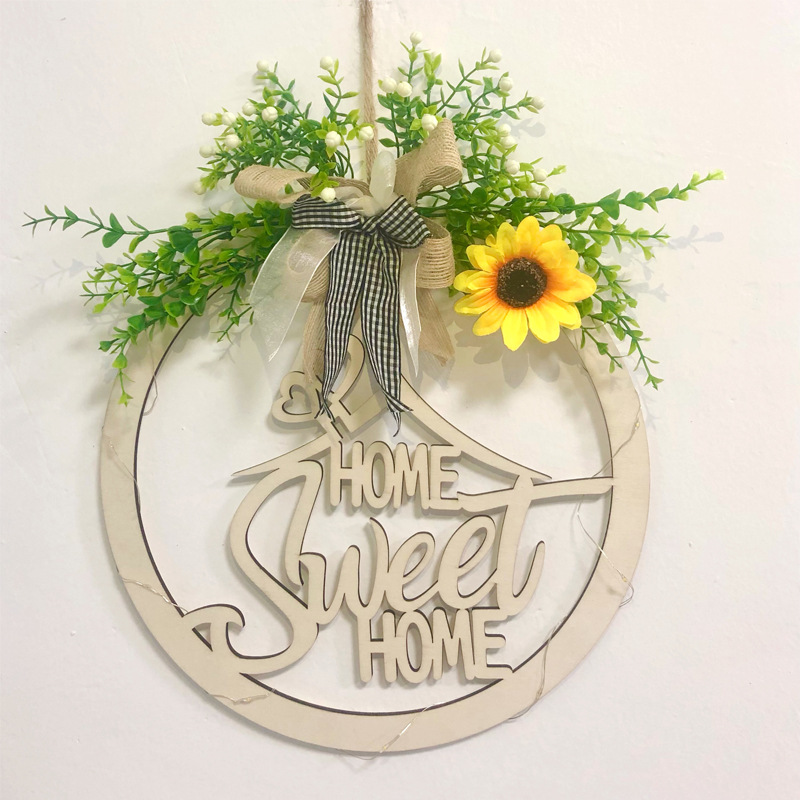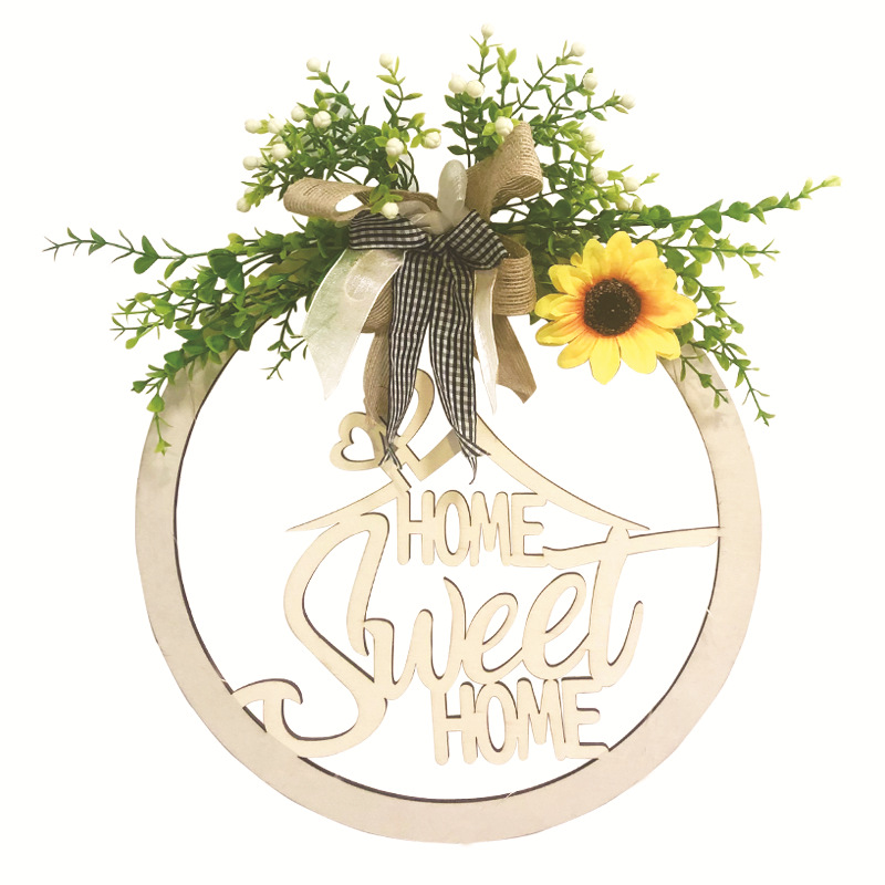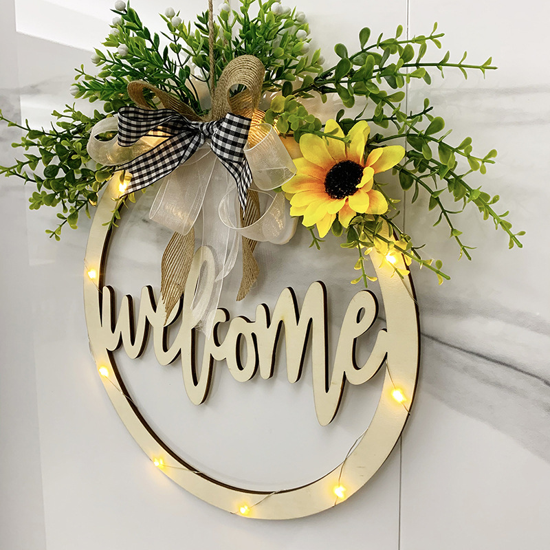 Wooden Letter Pattern With Linen Bowknot Front Door Round Decoration Hanging Crafts Fashionable And Exquisite Decorations