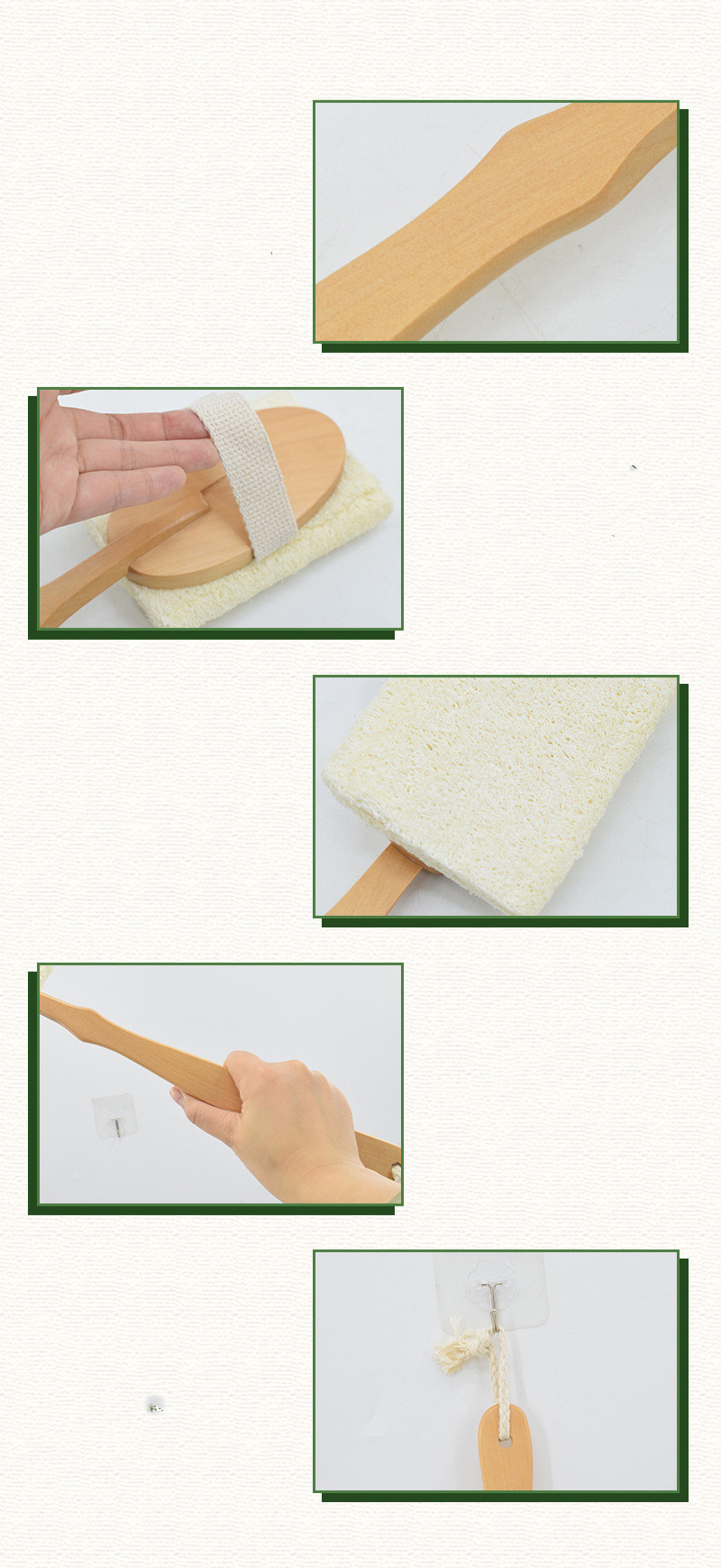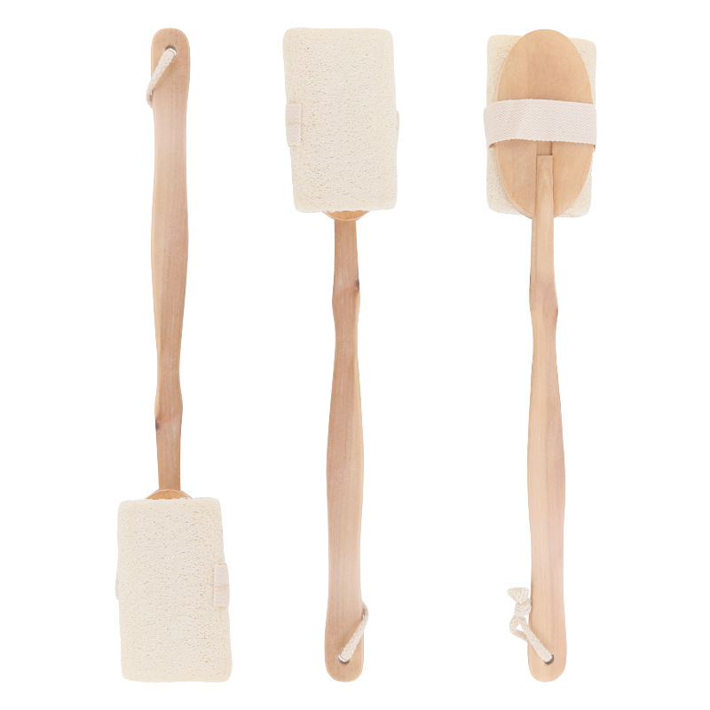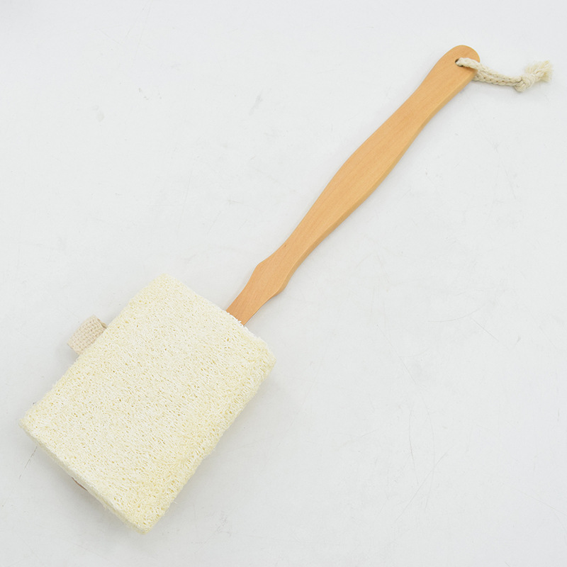 [Product name] Loofah shower brush with wooden handle