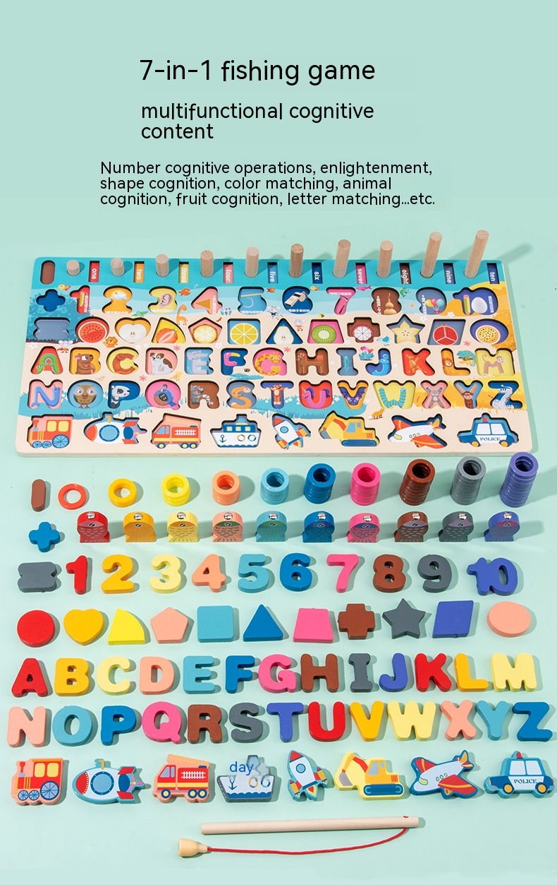 Wooden Multifunctional Numbers Board Magnetic Fishing Children's Digital Computing