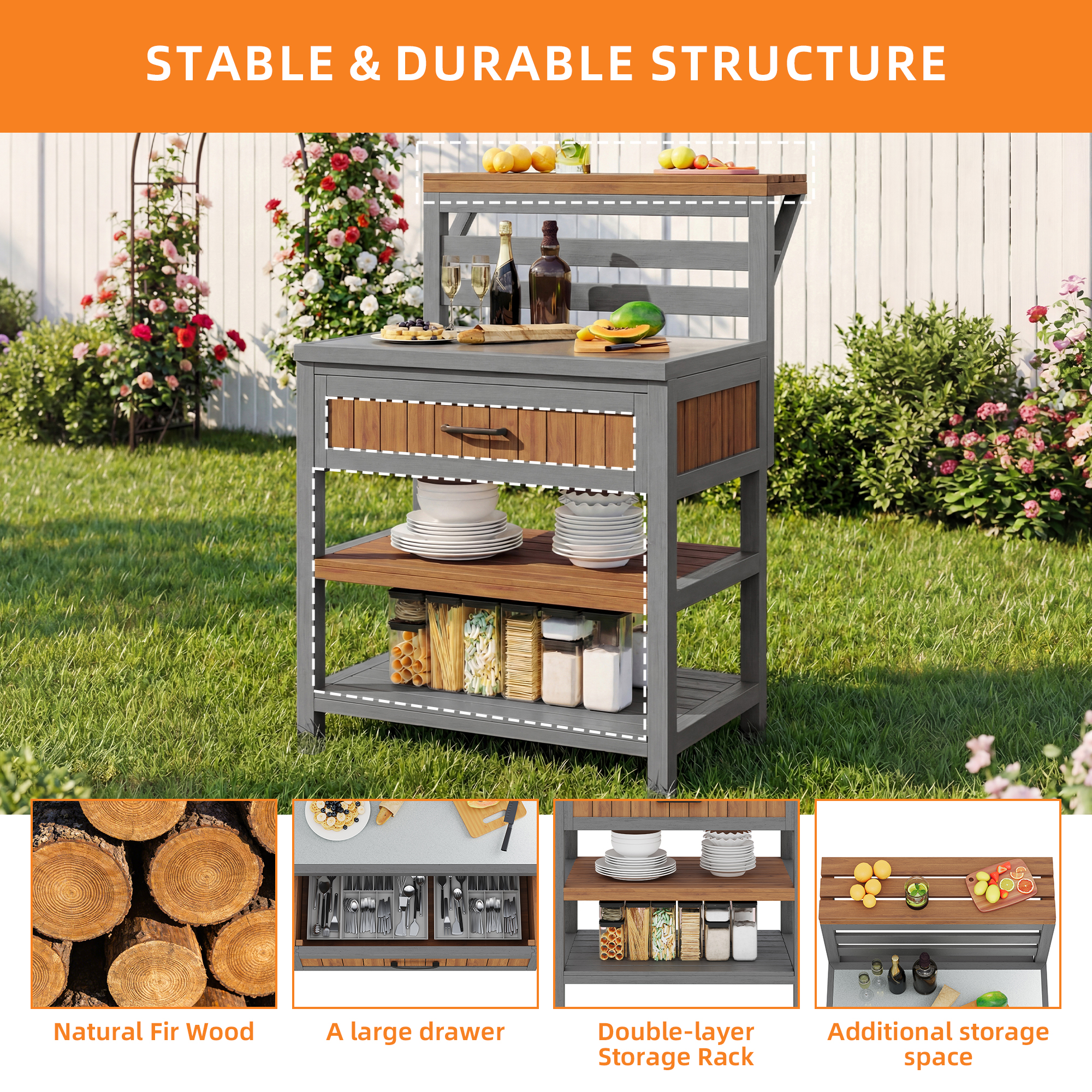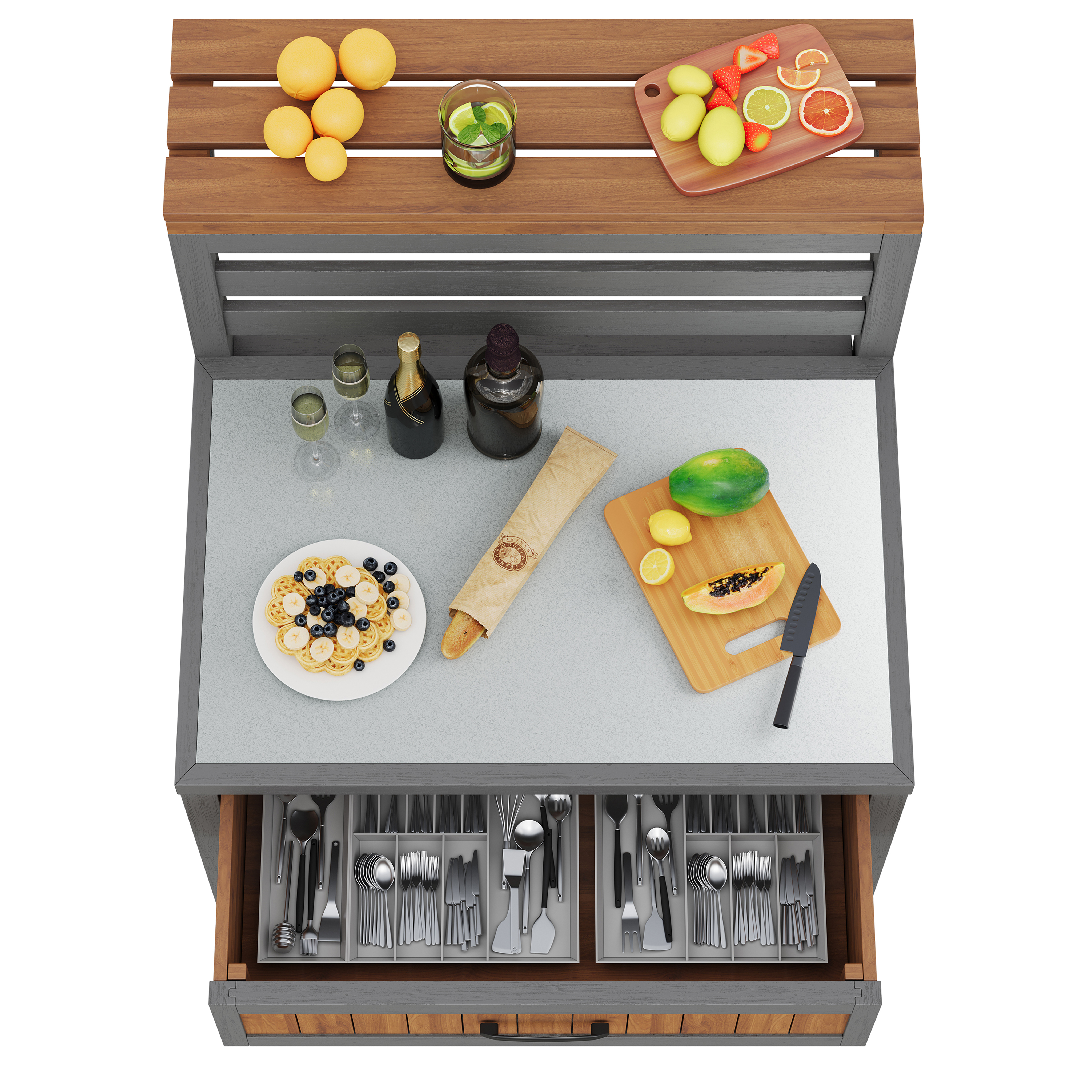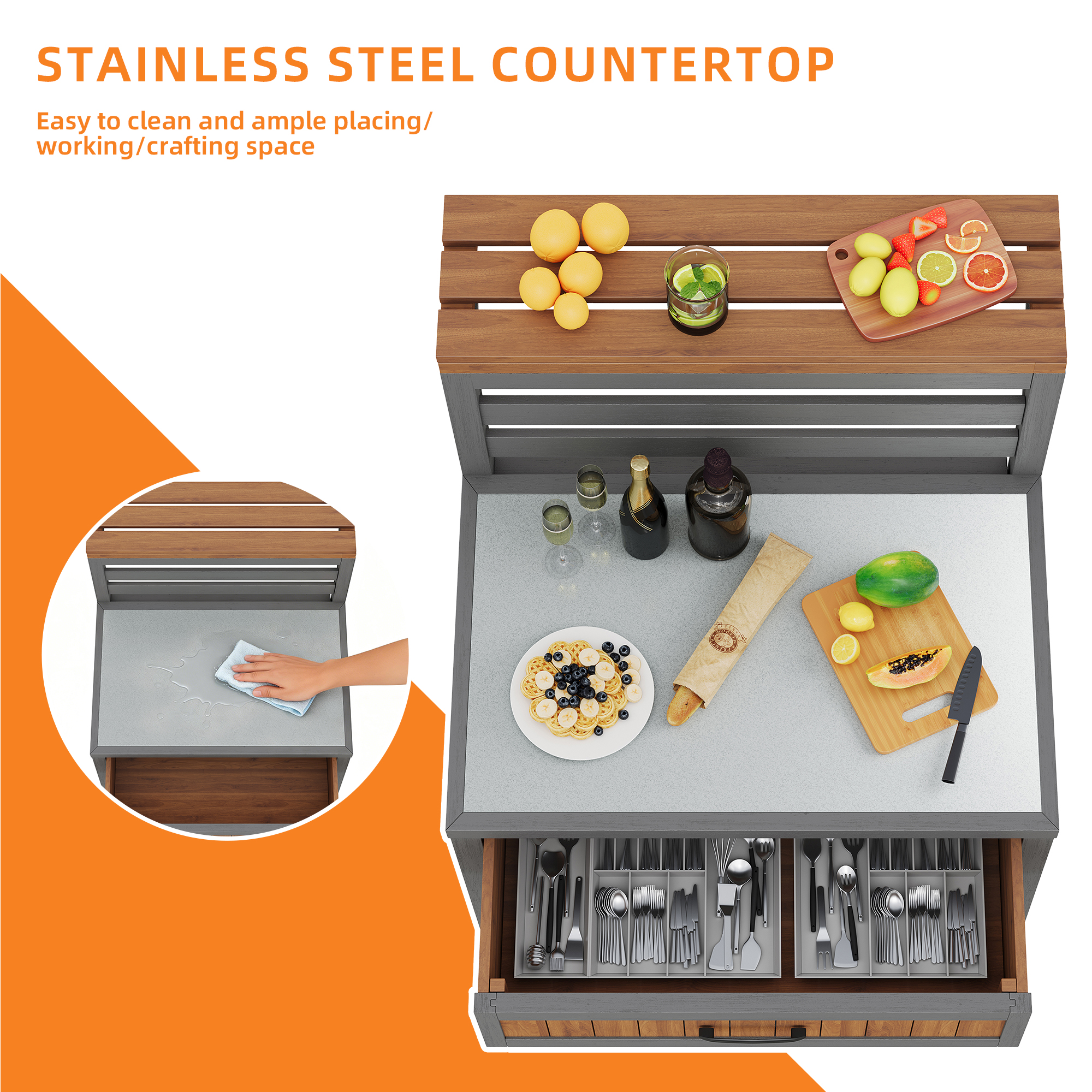 Product Name:Wooden outdoor garden cabinet, outdoor cabinet with stainless steel worktop & large drawer, barbecue station with double shelf, tilt-proof design, weather-resistant kitchen cabinet for patios