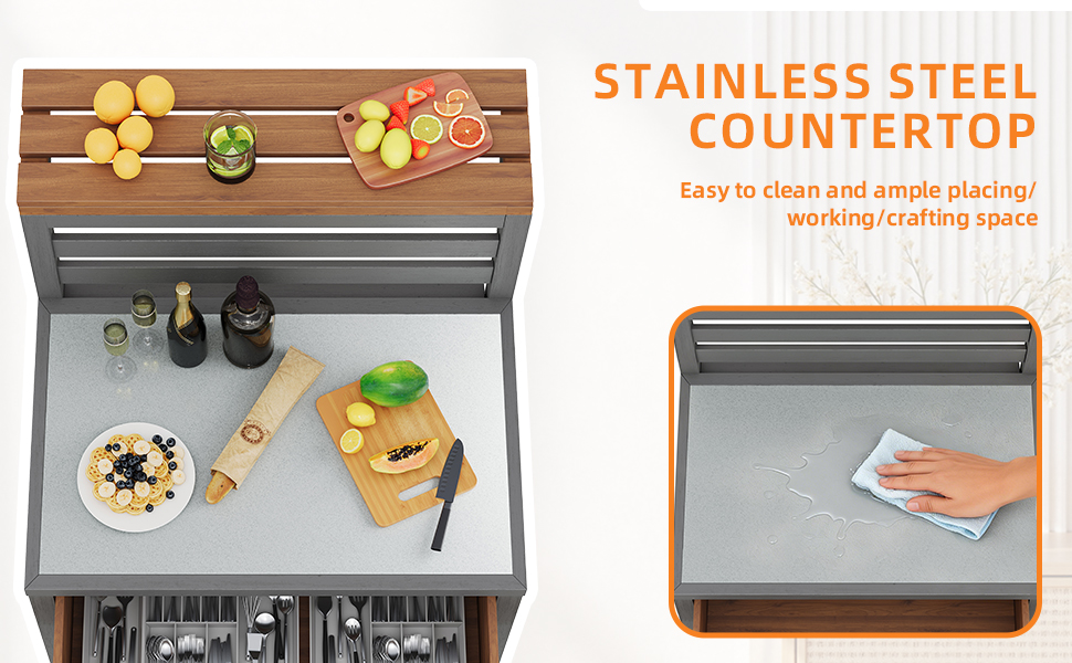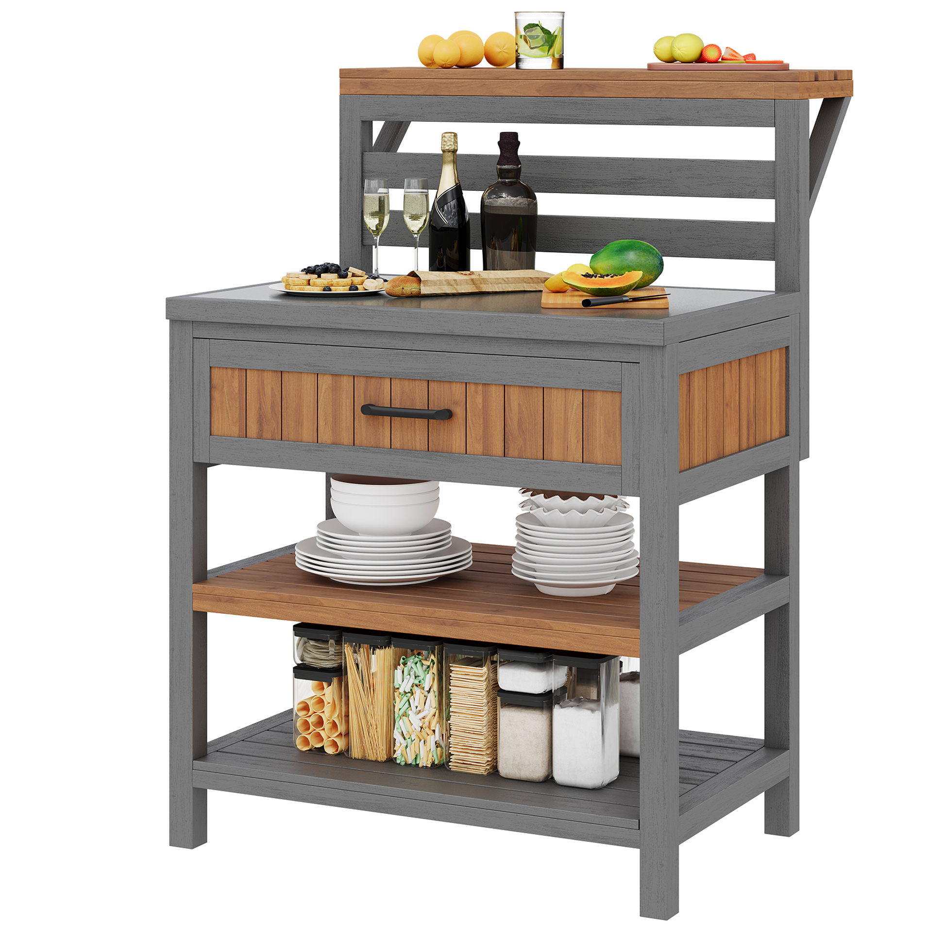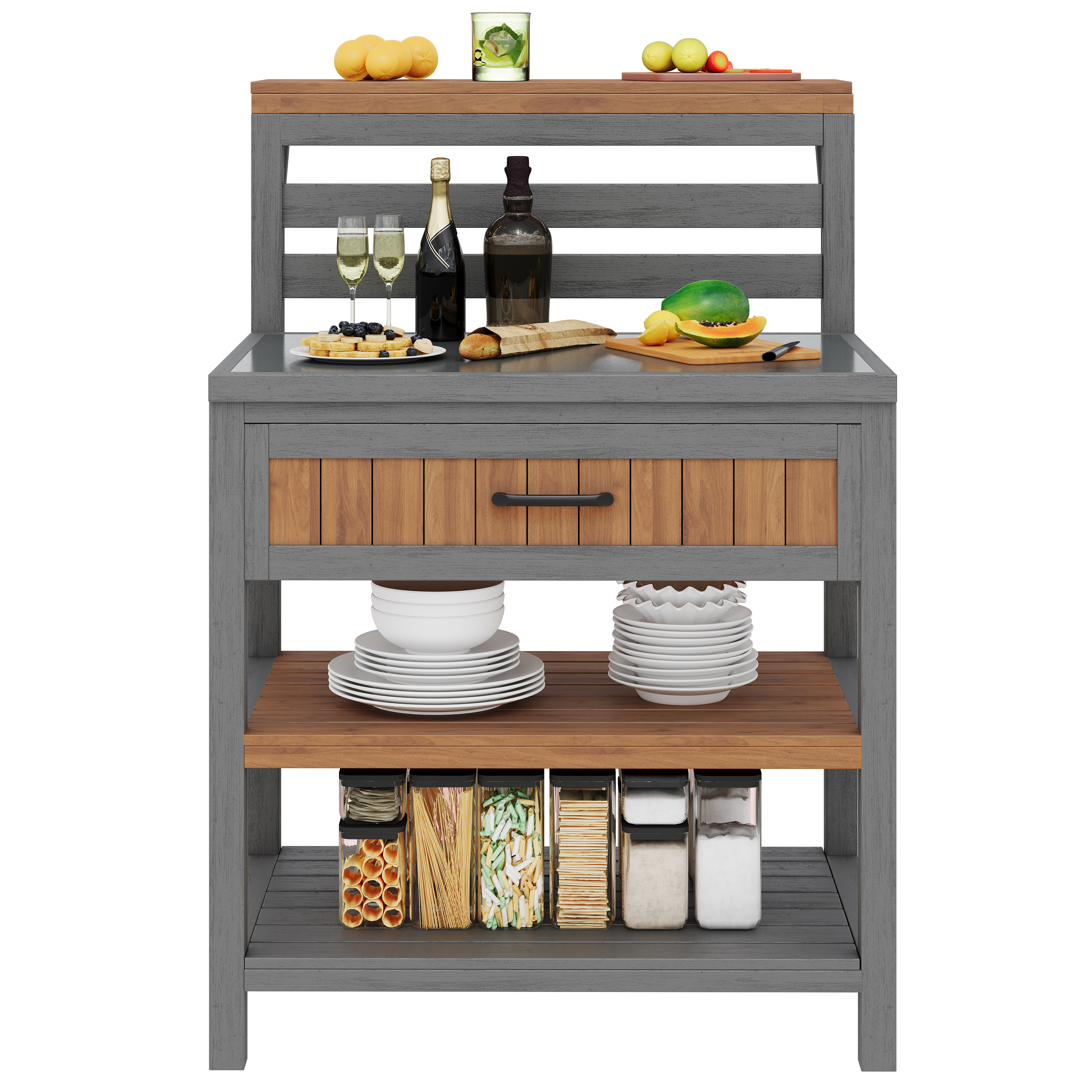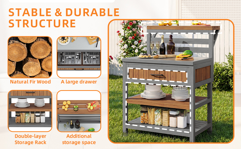 Product Name:Wooden outdoor garden cabinet, outdoor cabinet with stainless steel worktop & large drawer, barbecue station with double shelf, tilt-proof design, weather-resistant kitchen cabinet for patios