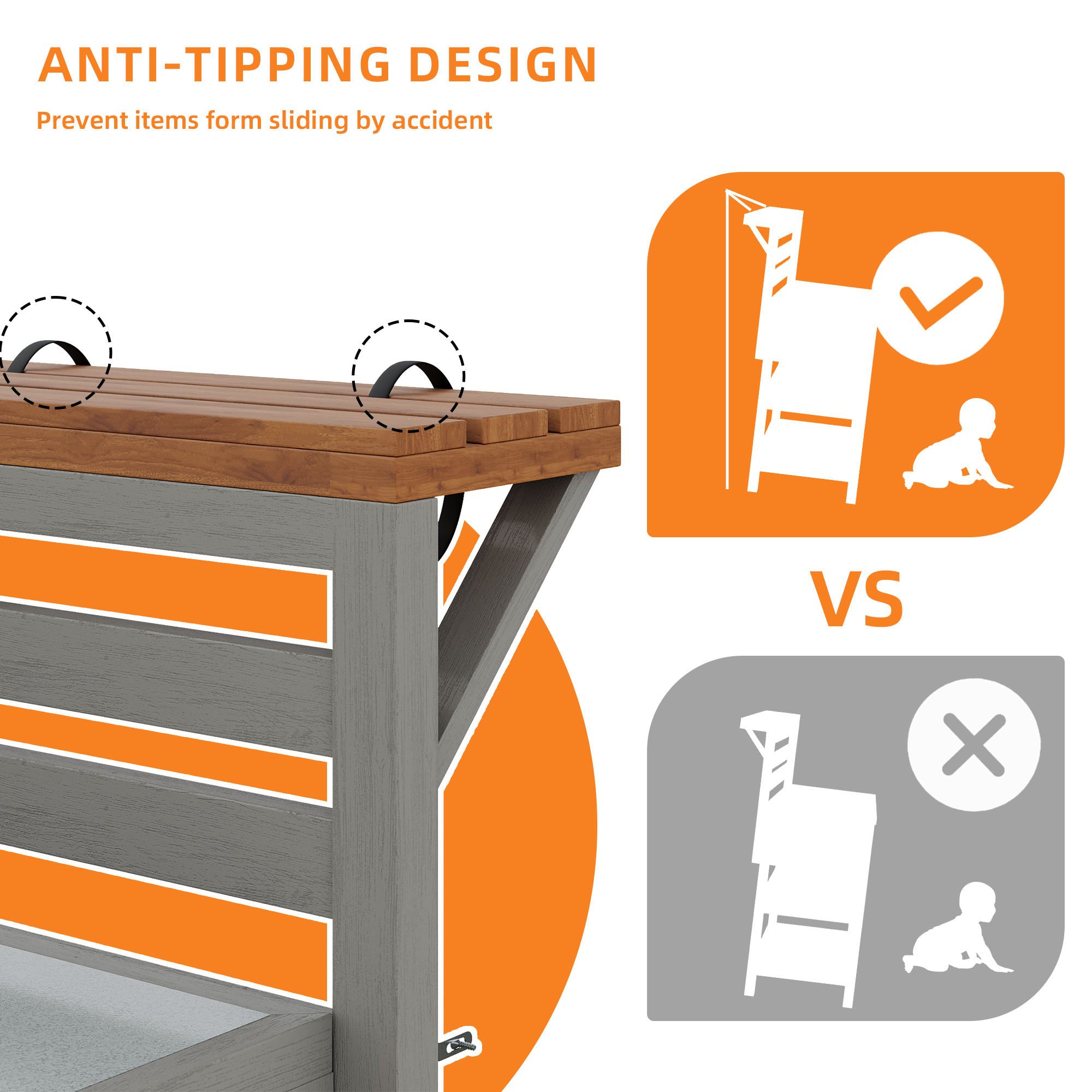 Safety and durability are paramount in this garden cabinet. The integrated anti-tip device ensures stability, even on uneven ground, and prevents accidental tipping – ideal for households with children or pets. The frame, crafted from high-quality fir wood, boasts a beautiful natural grain and exceptional resistance to weathering, including rain and sunlight. Combined with the robust stainless steel worktop, this piece of furniture will reliably serve you for years, even with intensive use. Whether used as a BBQ cabinet or a sideboard, you can count on its stability.