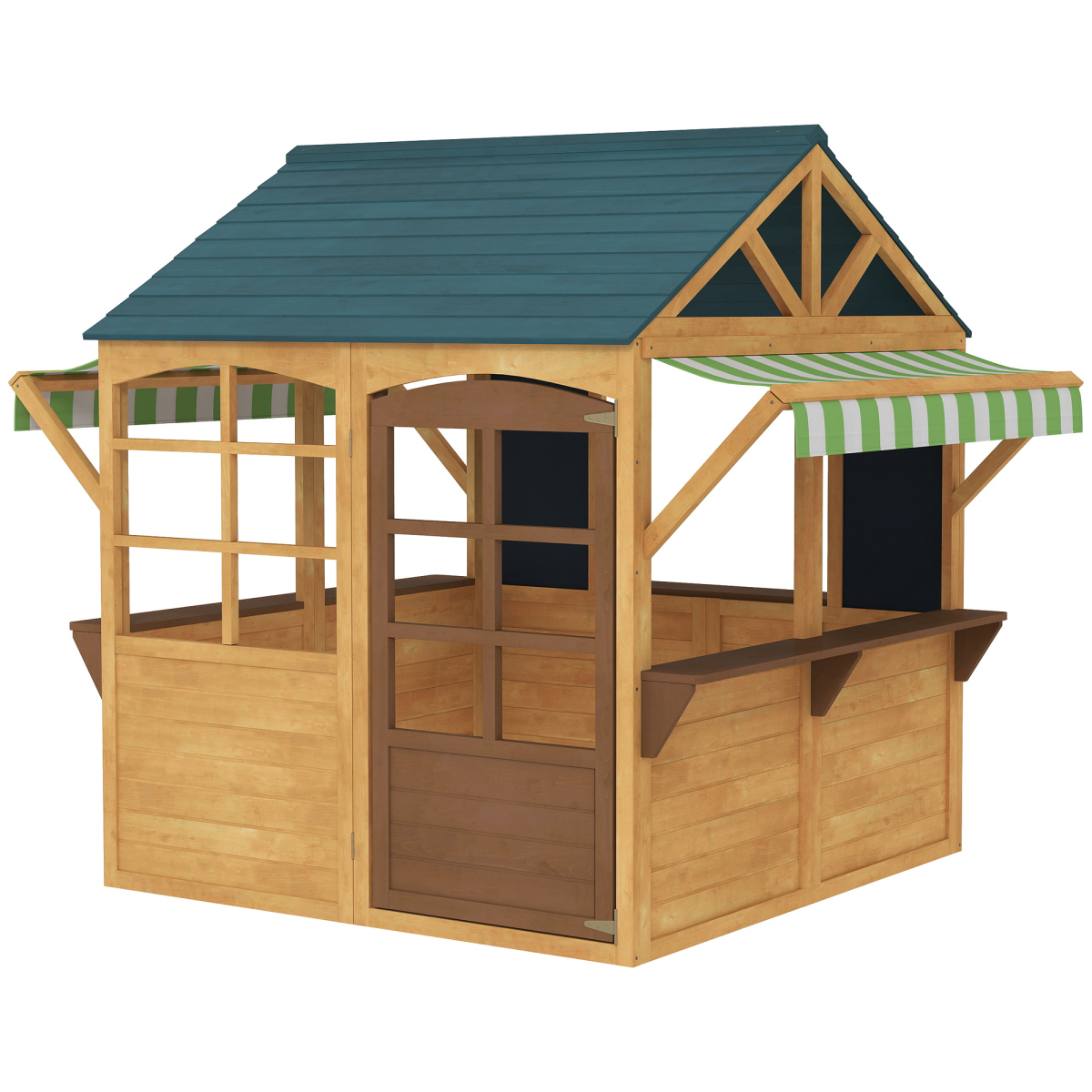Wooden Outdoor Playhouse, Foldable Kids Cottage With Windows, Working Door, Snack Bars, Waterproof Covers, For 3-8 Years