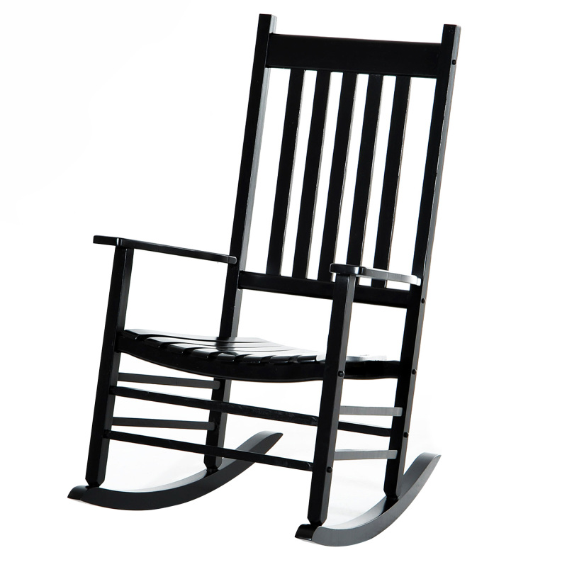 Wooden Outdoor Rocking Chair With Armrests, High Back For Garden, Patio, Balcony, Porch, Black