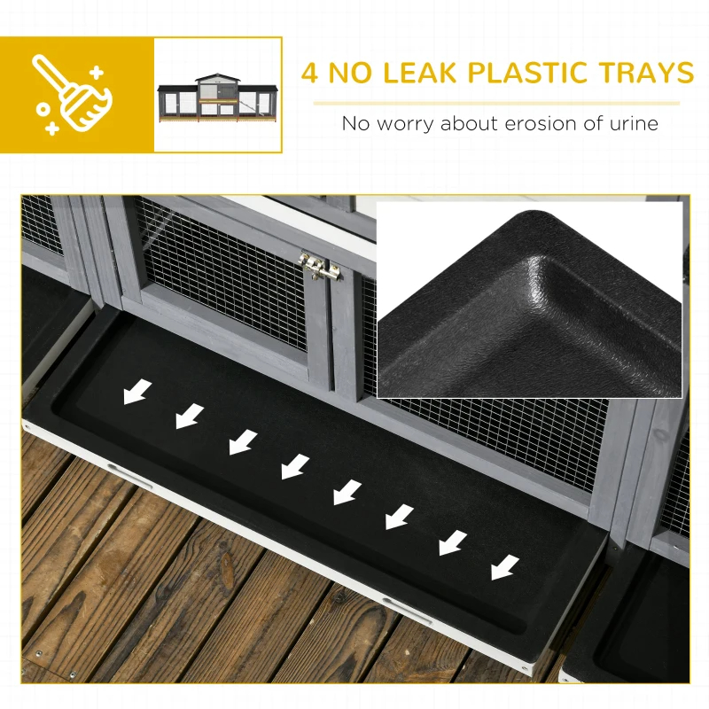 Wooden Rabbit Hutch Bunny Cage Pet Playpen House Enclosure With Double Side Run Boxes, No Leak Tray, Ramp, For Rabbits, Chickens, Ducks, Guinea Pig And Small Animals, Light Gray