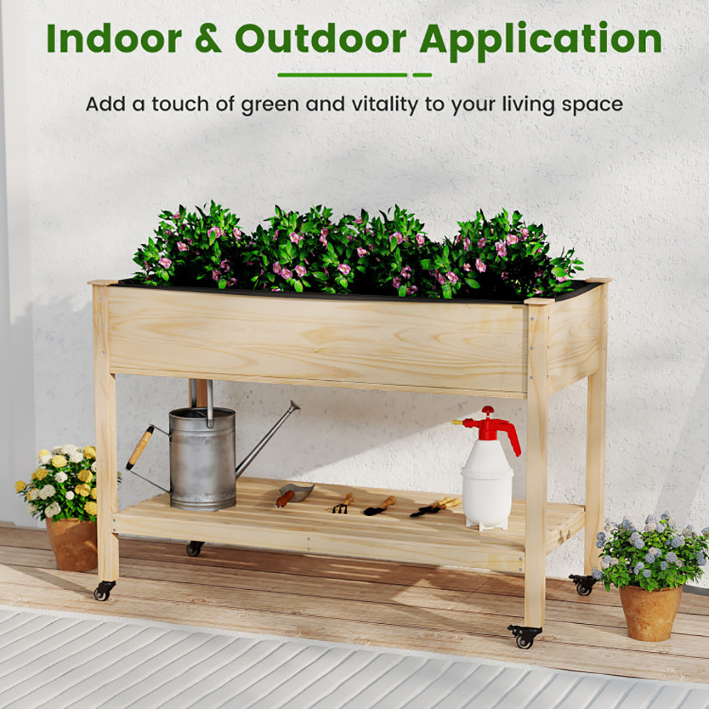 • Easy Mobility: This wooden raised garden bed features 4 universal wheels, including 2 lockable wheels, ideal for catching the optimal sunlight or simply rearranging your outdoor space. It seamlessly fits a variety of settings, such as patios, balconies, gardens, greenhouses, or even bright indoor spaces.