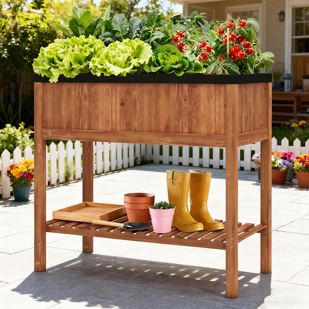 Wooden Raised Garden Bed With Storage Shelf And 220 LBS Capacity