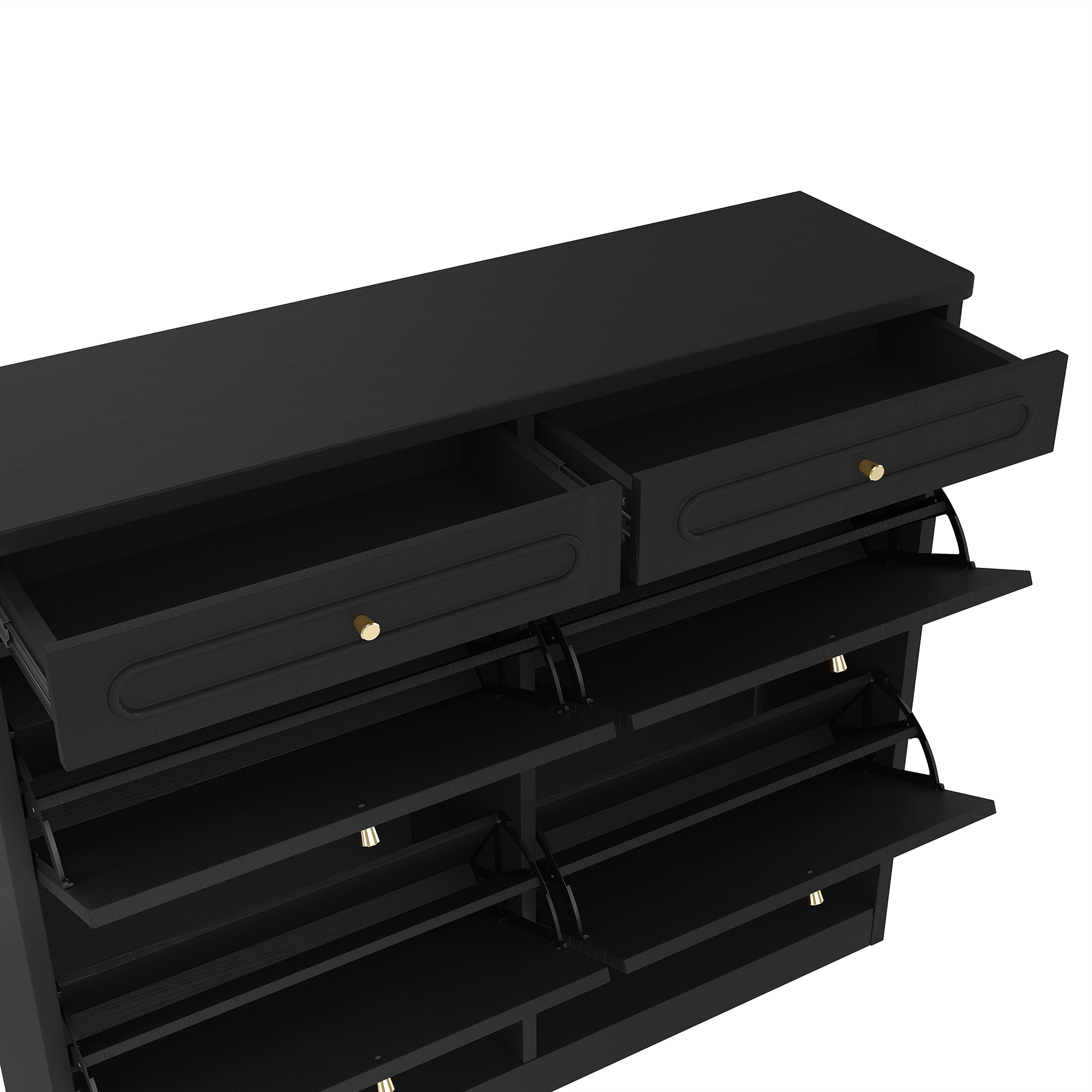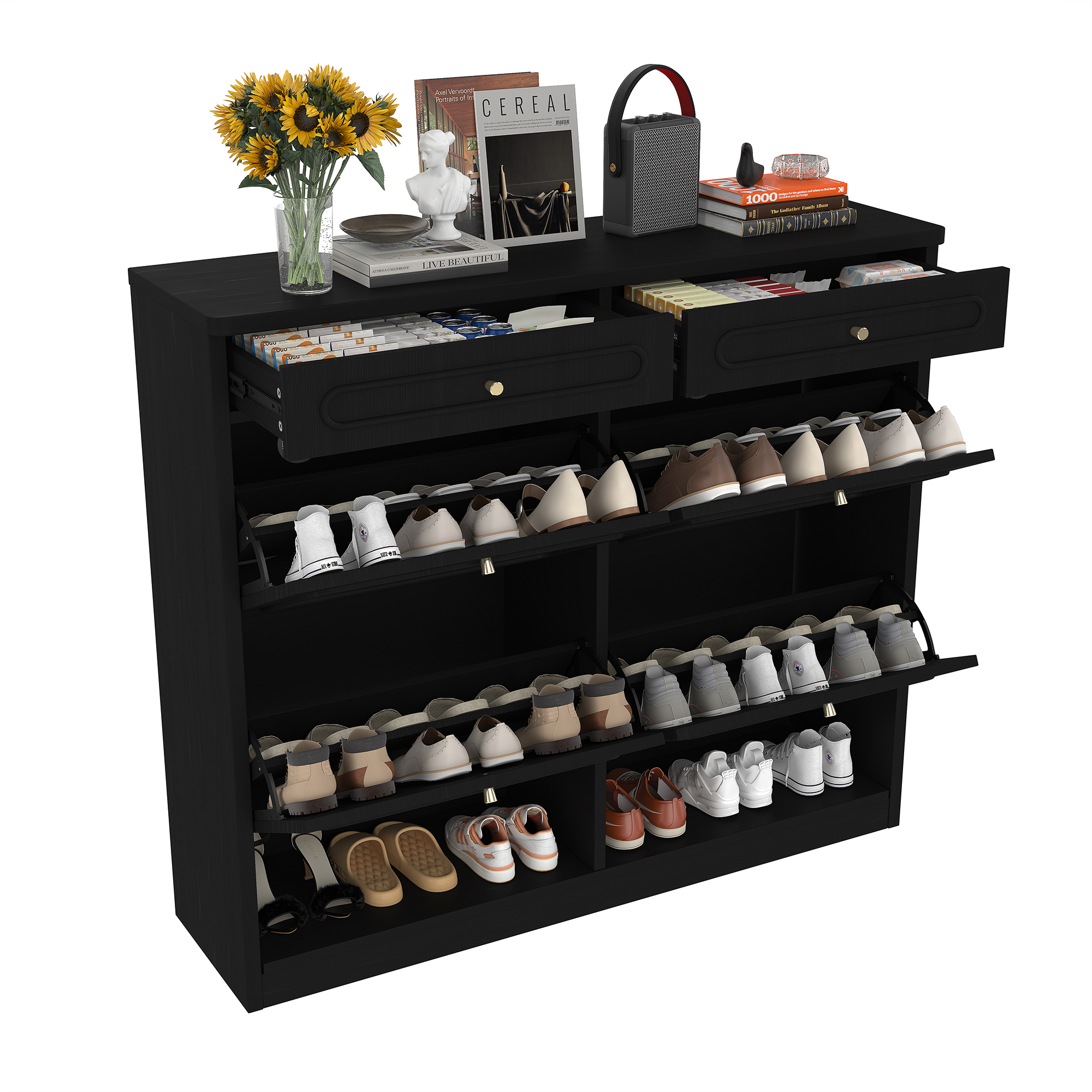 Product Name:Wooden Shoe Cabinet with 4 Flip Drawers,Shoes Rack Cabinet with 2 Storage Drawers,Classified Storage and Farmhouse Style, Black