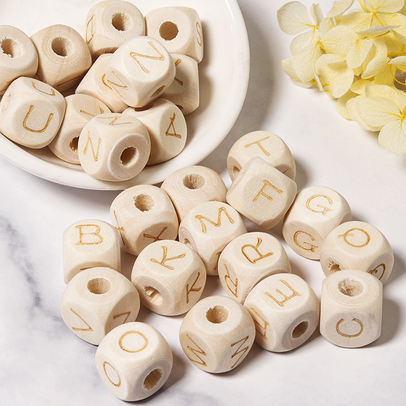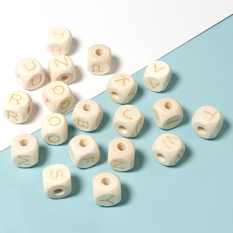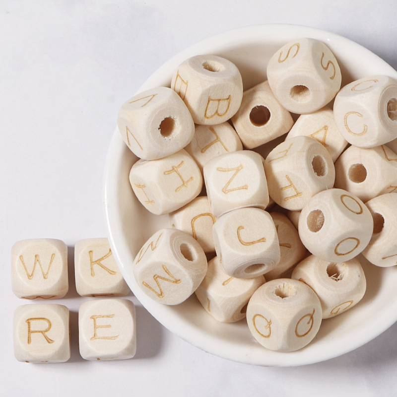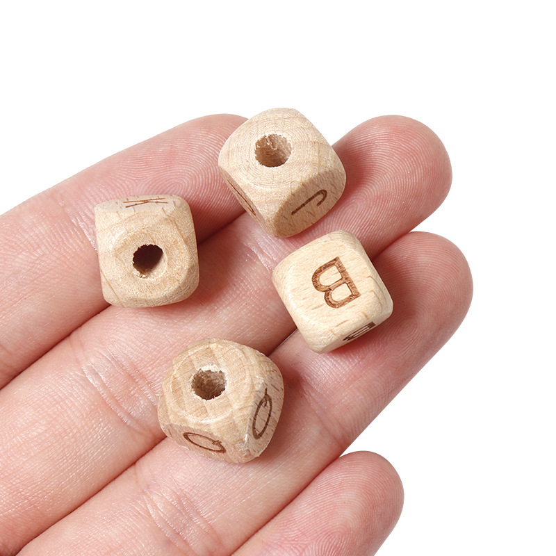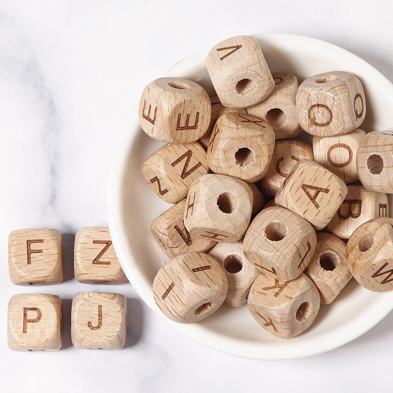 Color: 1 Style:Grass Letter Beads (A-Z), 2 Style:Beech letter beads (A-Z)