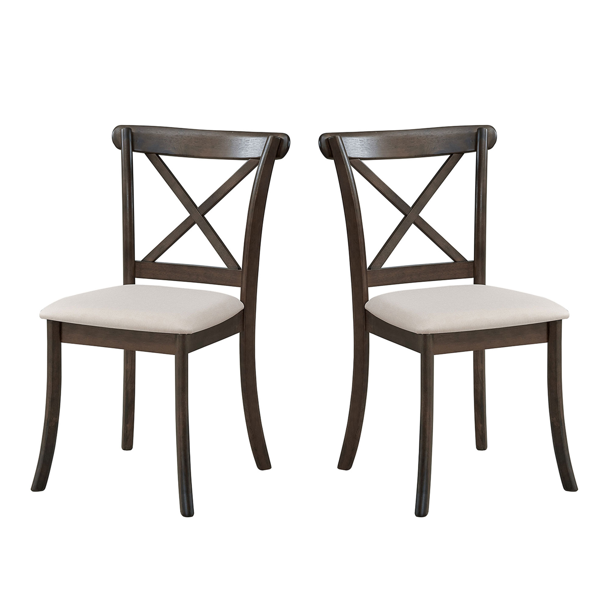 Product Name:Wooden X Back Dining Chairs Set of 2, Modern Fabric Upholstered Kitchen Side 2PC Chairs, Cross Back Rubber Wood Farmhouse Dining Room Chair,Brown
