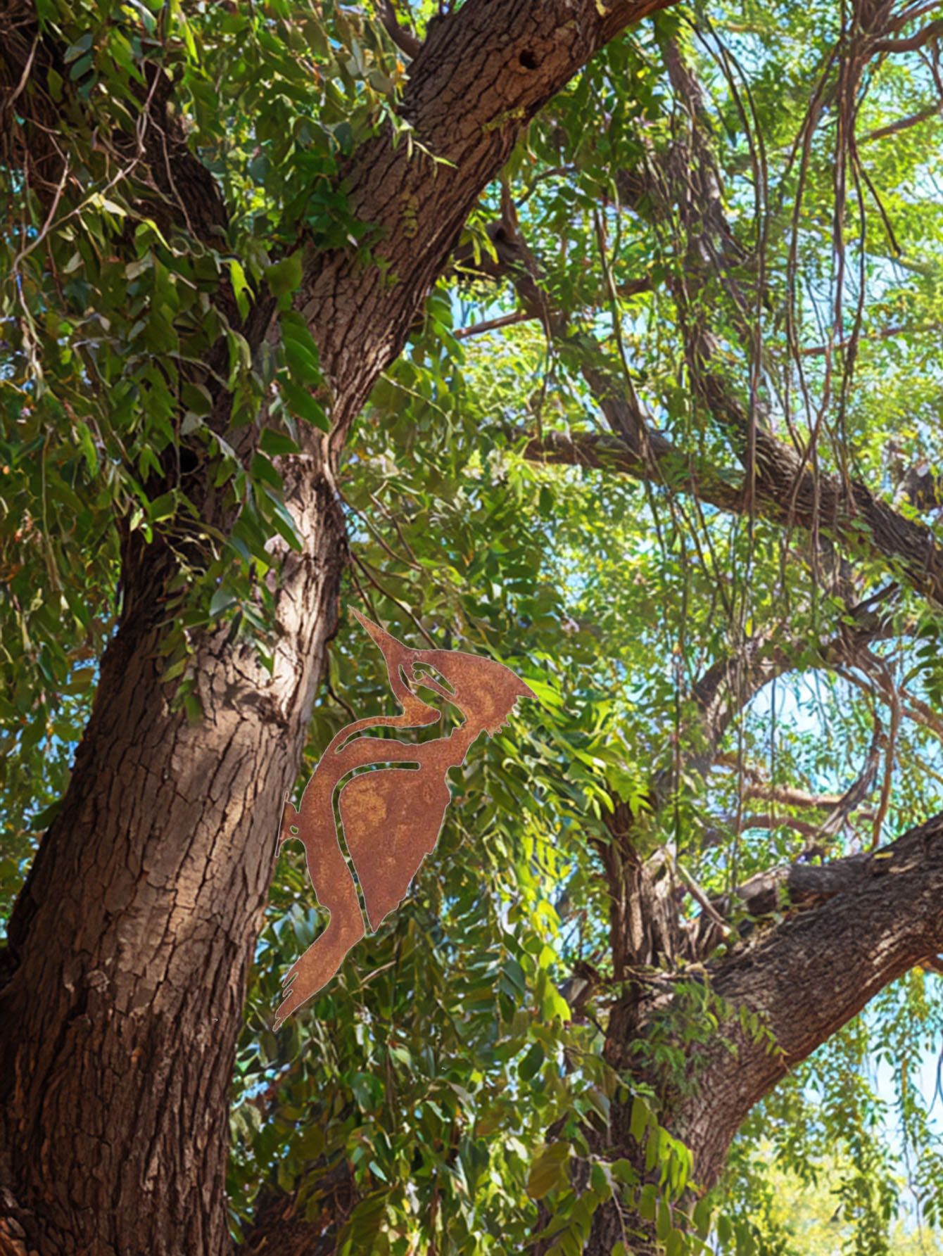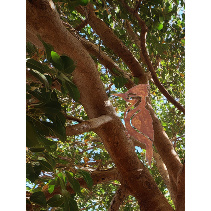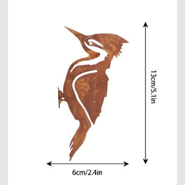 Woodpecker & Robin Ornament Rusty Metal Bird Statues - Country-Style Garden Fence Decor Perfect Outdoor Garden Art with Lifelike Design Weather-Resistant Material for Yard Patio Lawn Decoration Wall Sculptures