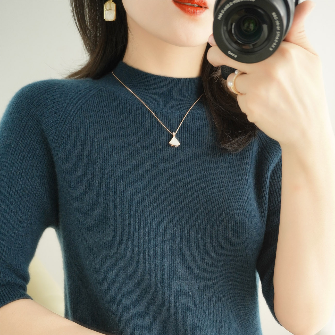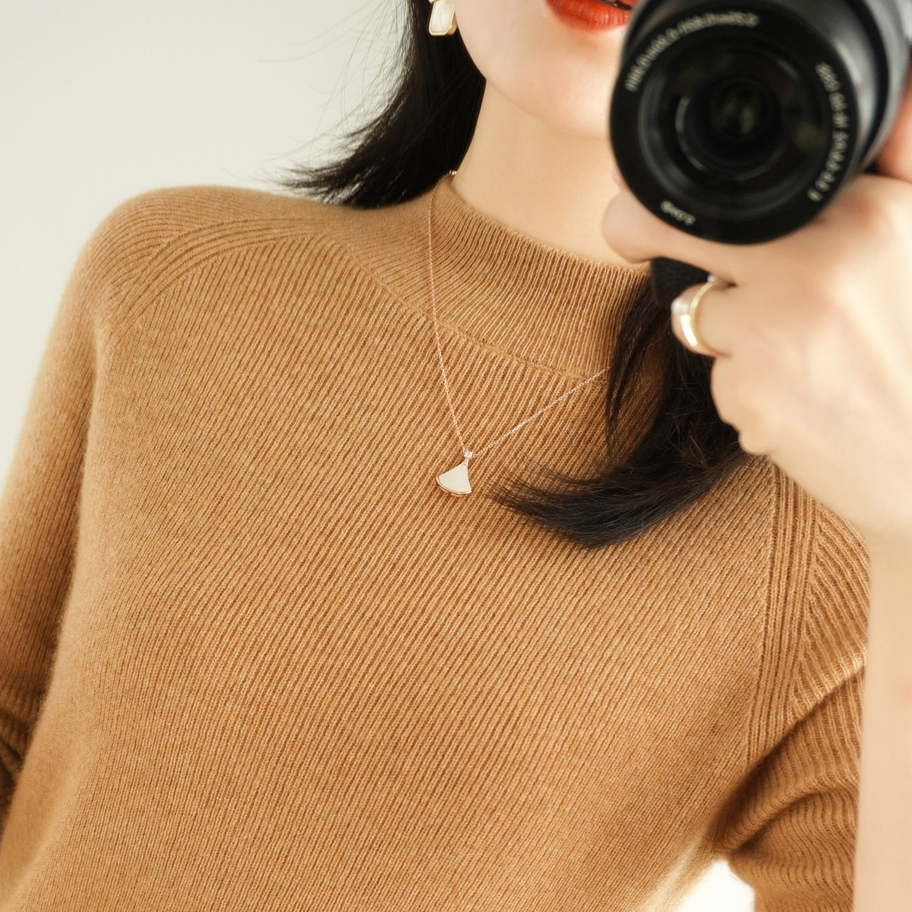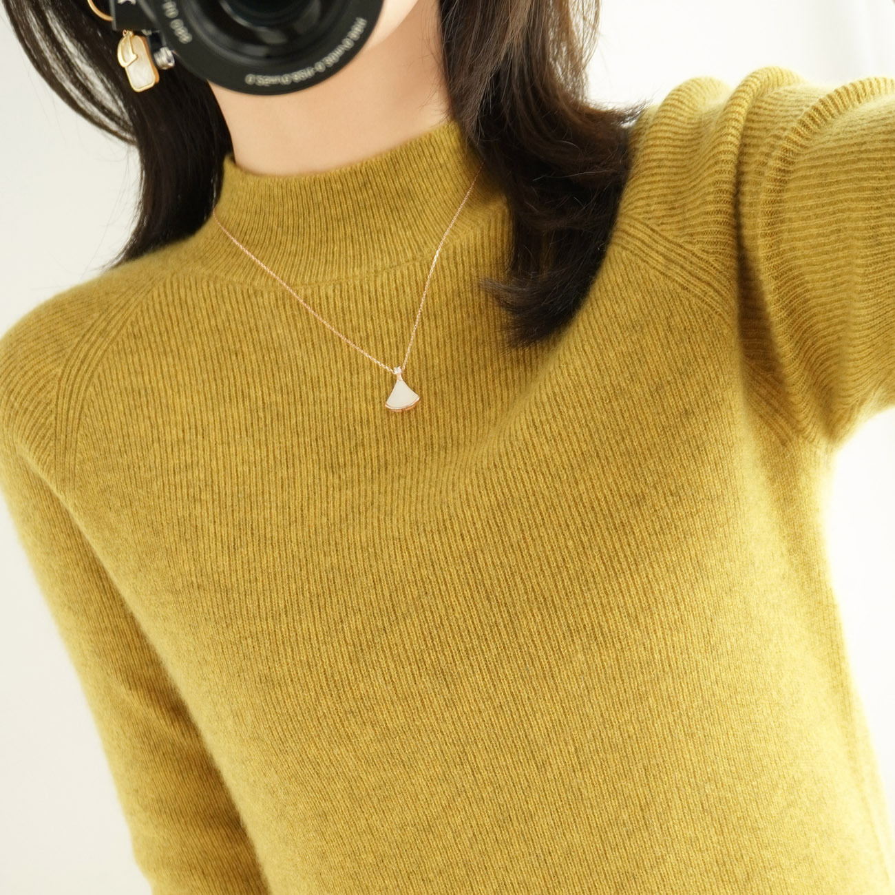Wool Blended Autumn And Winter New Women's Mock-neck Mid-length Sleeve Knitwear