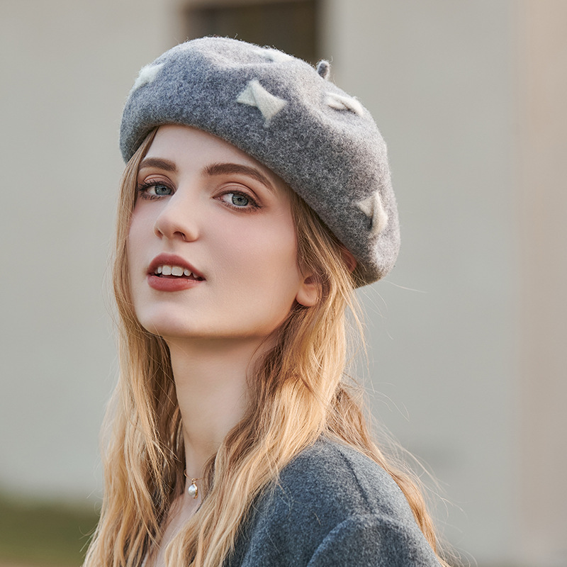 Wool Cap Children's Warm Painter Bow Beret