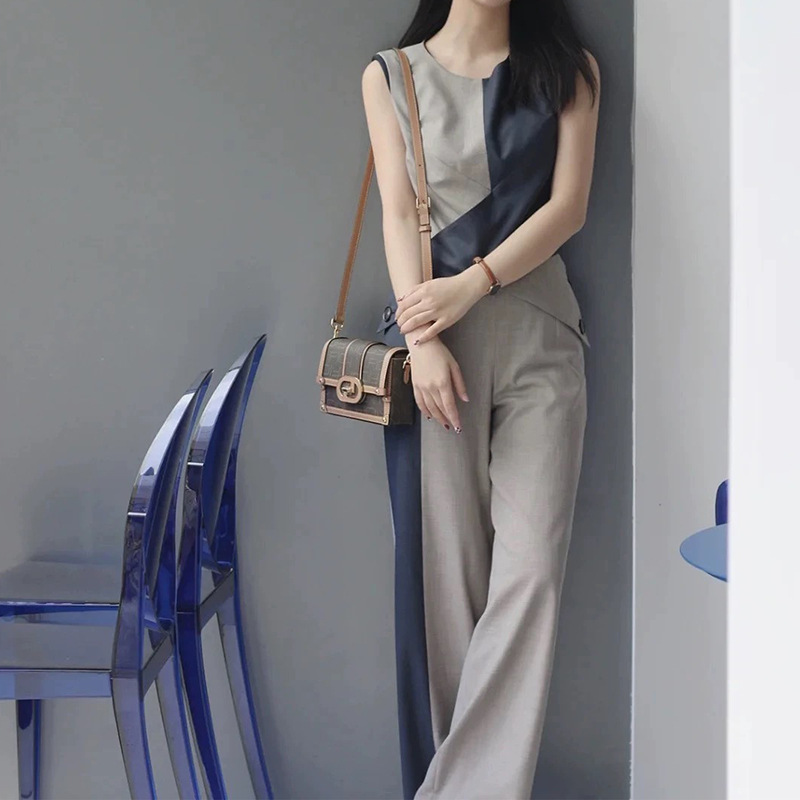 Wool Color Matching Sleeveless Jumpsuit Fashion Commuter