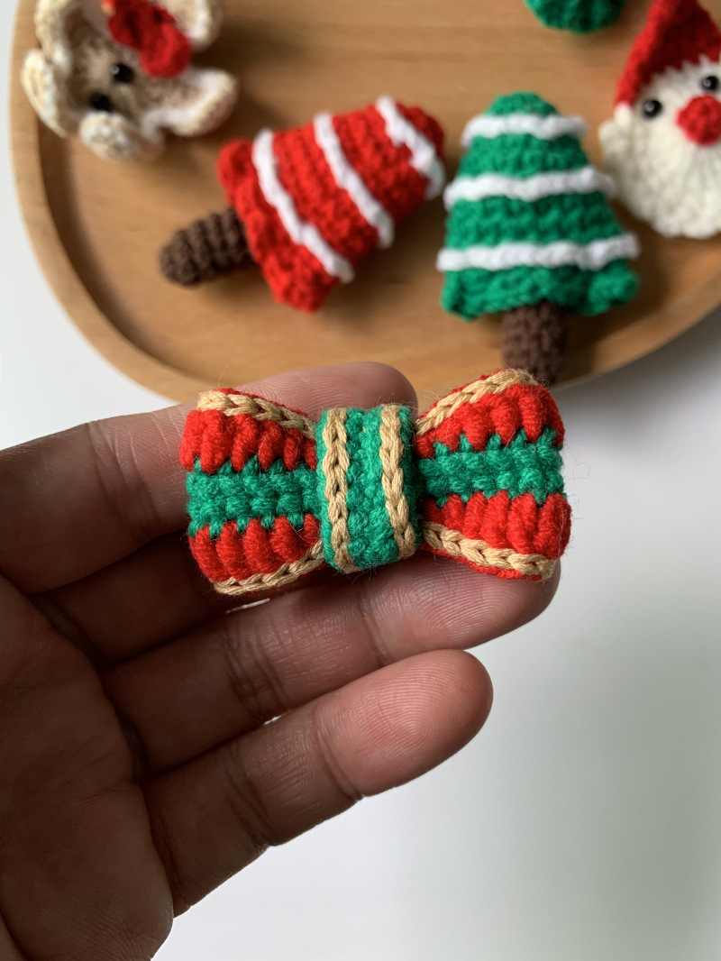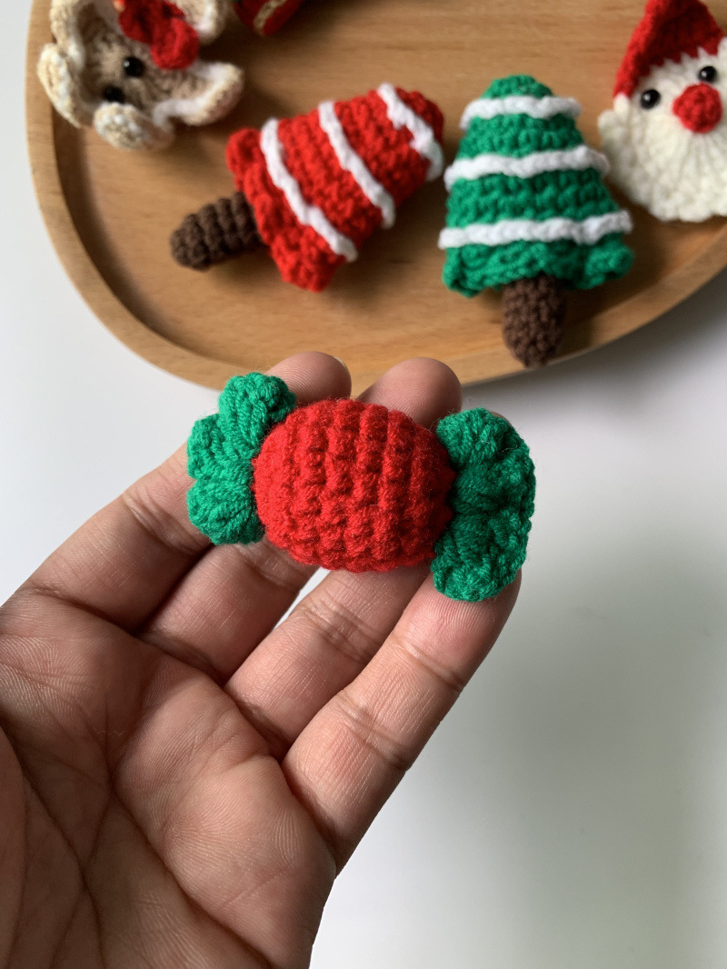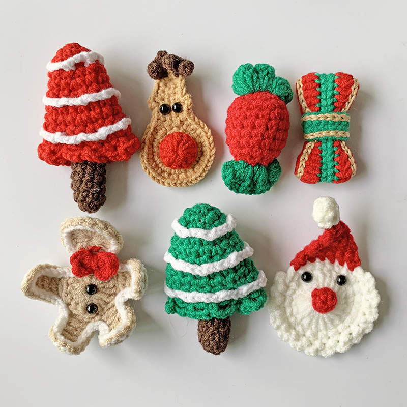 Color: red Christmas tree, green Christmas tree, red Christmas hat, elk, candy, bow, gingerbread man, Santa Claus