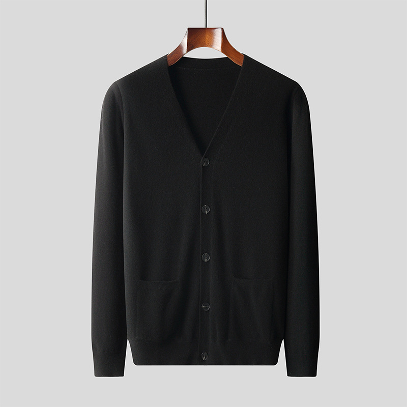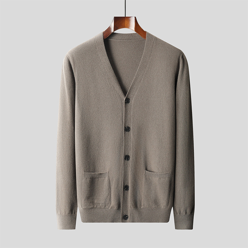 Wool Knit Cardigan Men's Casual V-neck Sweater Coat