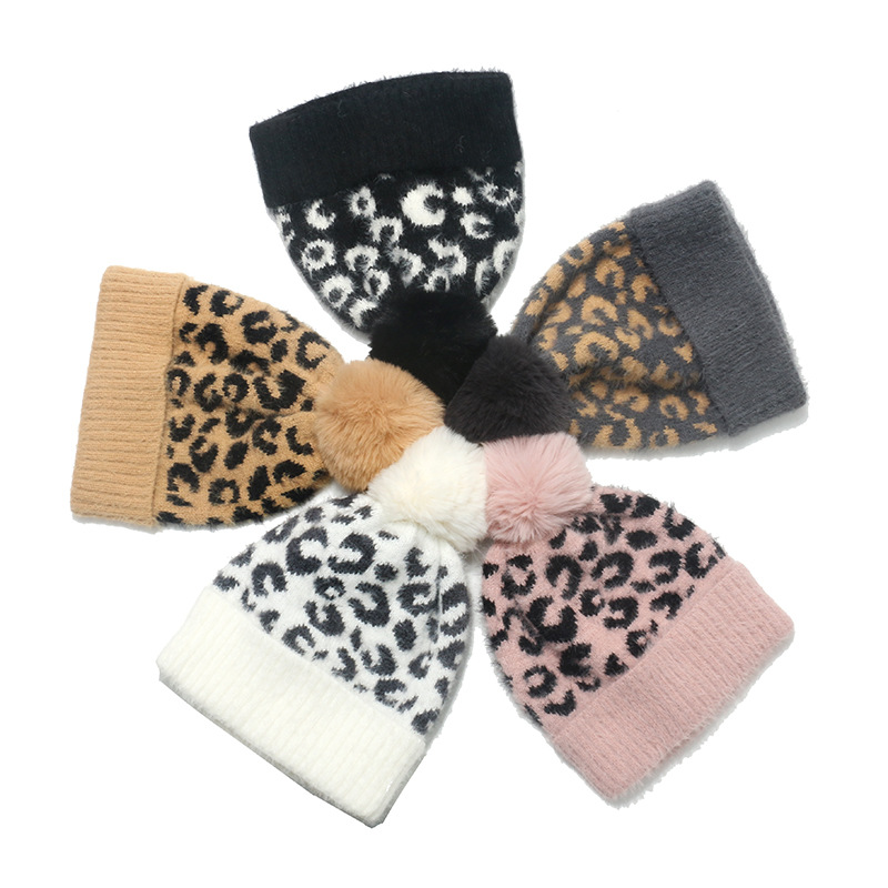 Wool Korean All-match Warm Mink Fur Sleeve Ball Leopard Print Knitted Hat