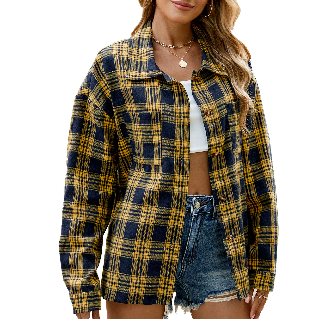 Wool Striped Long Sleeve Style Shirt Coat Women