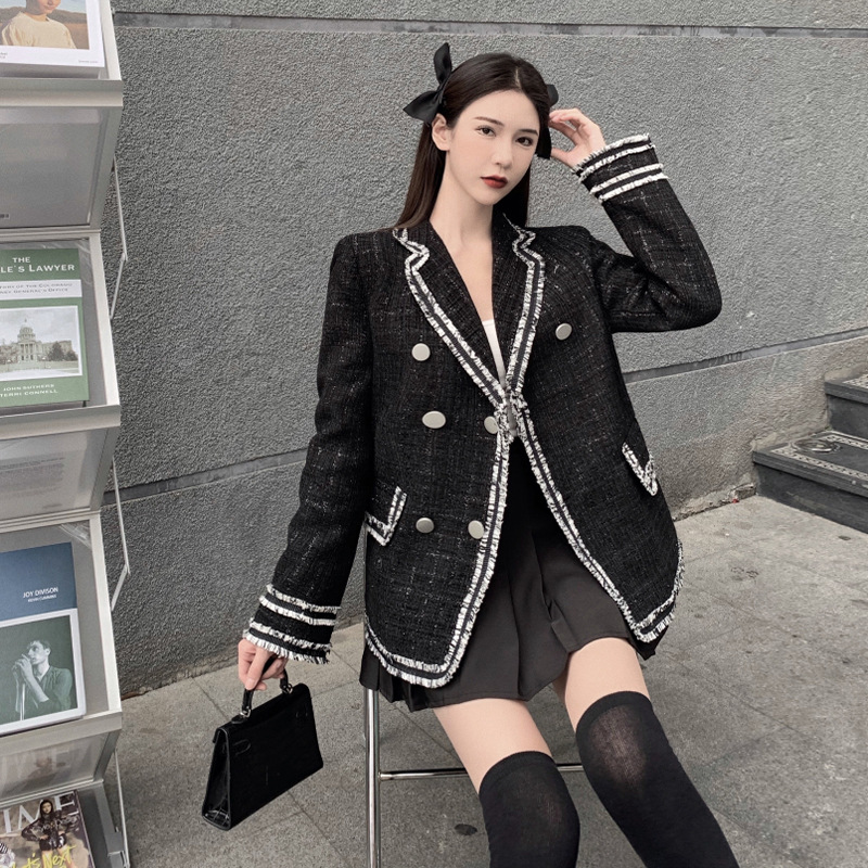 Woolen Coat Women'S Autumn And Winter New Korean Style Contrast Color Small And Loose