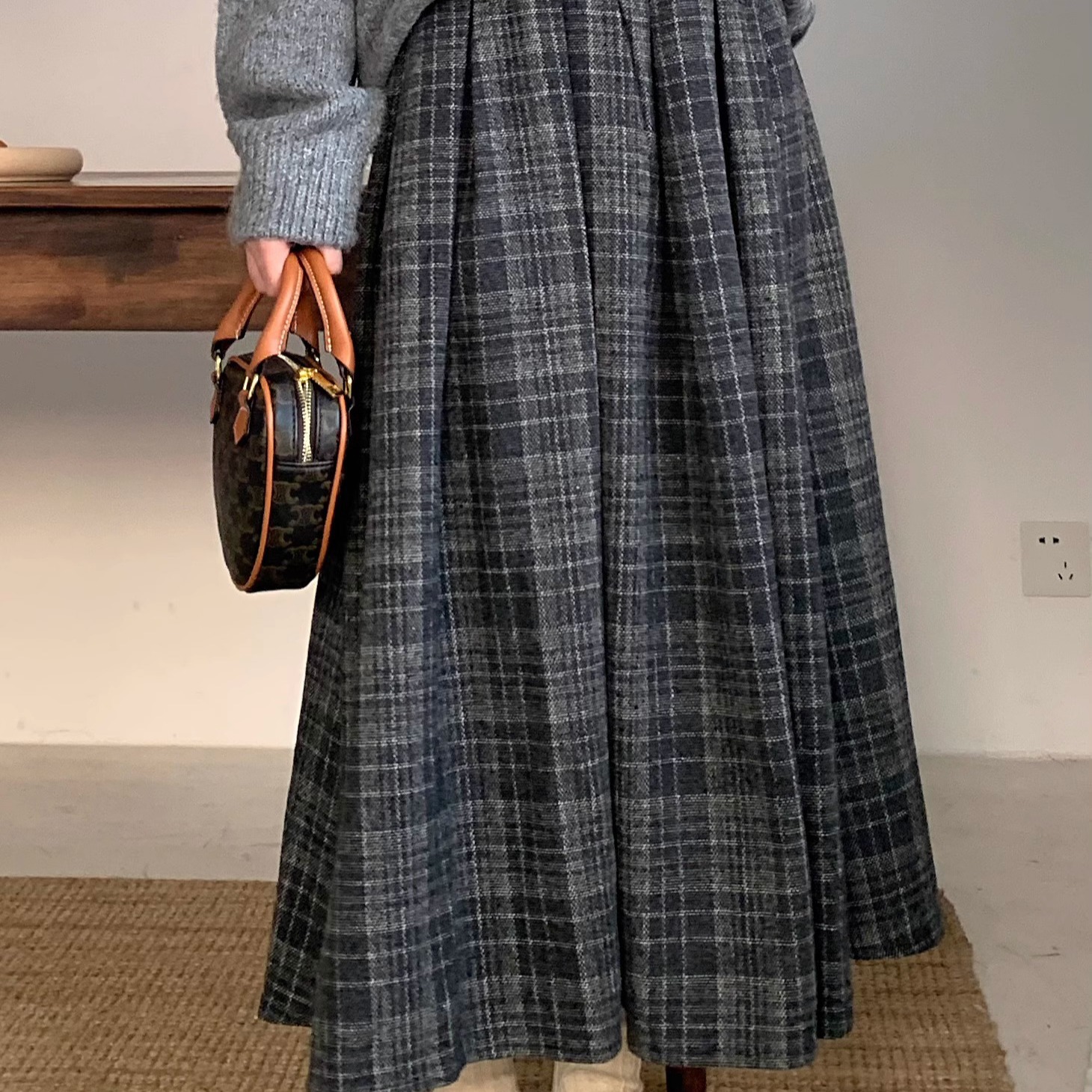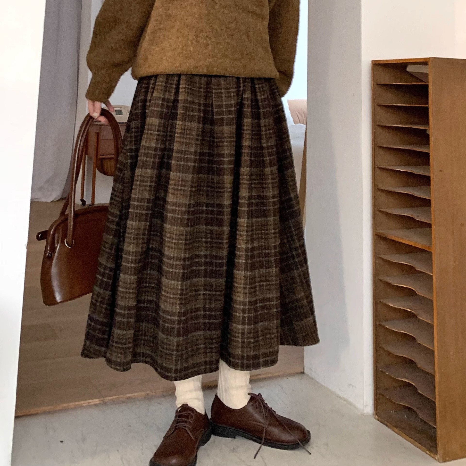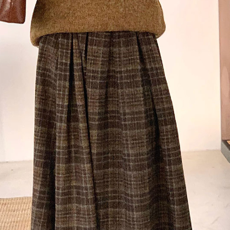 Woolen Preppy Style Retro Plaid Pleated Skirt