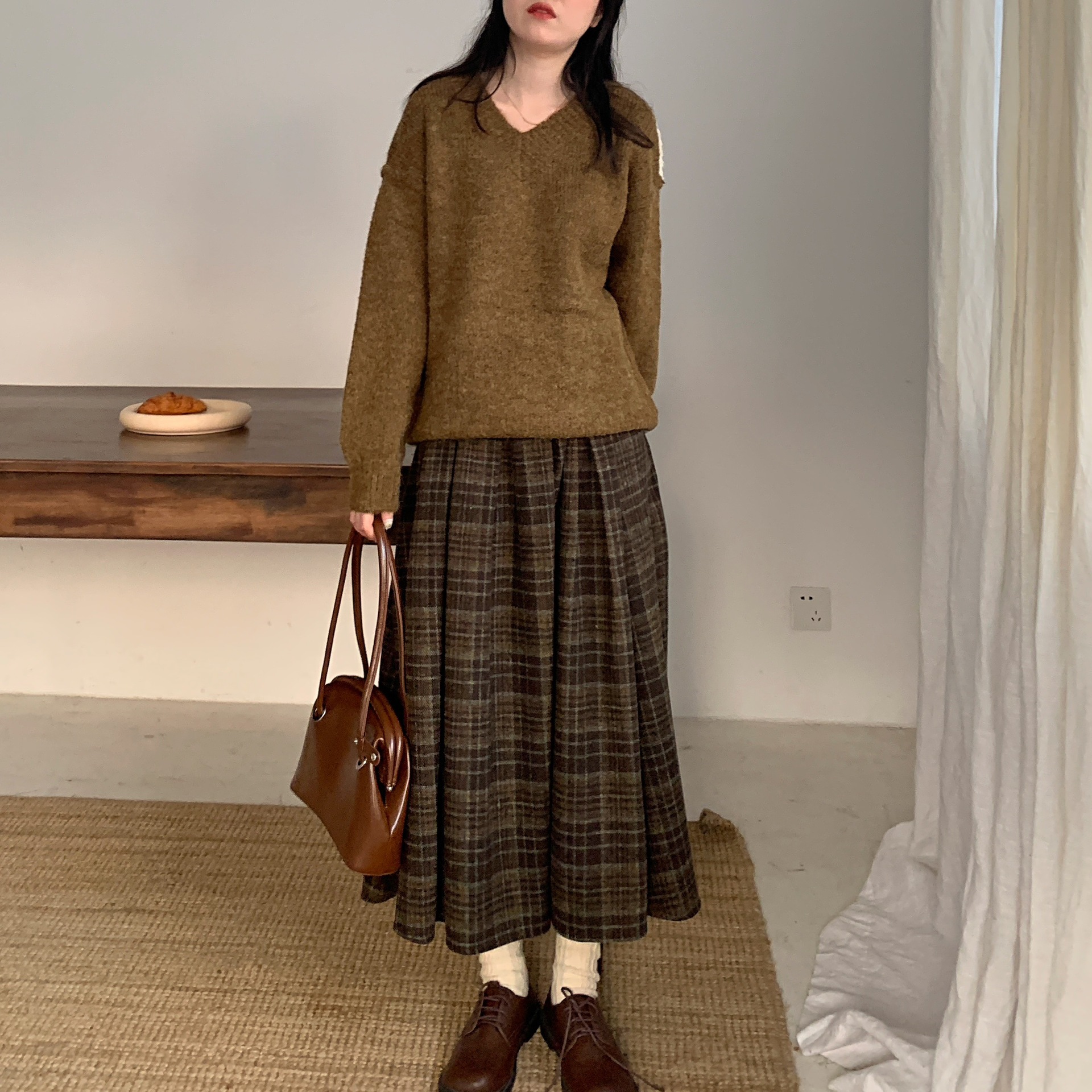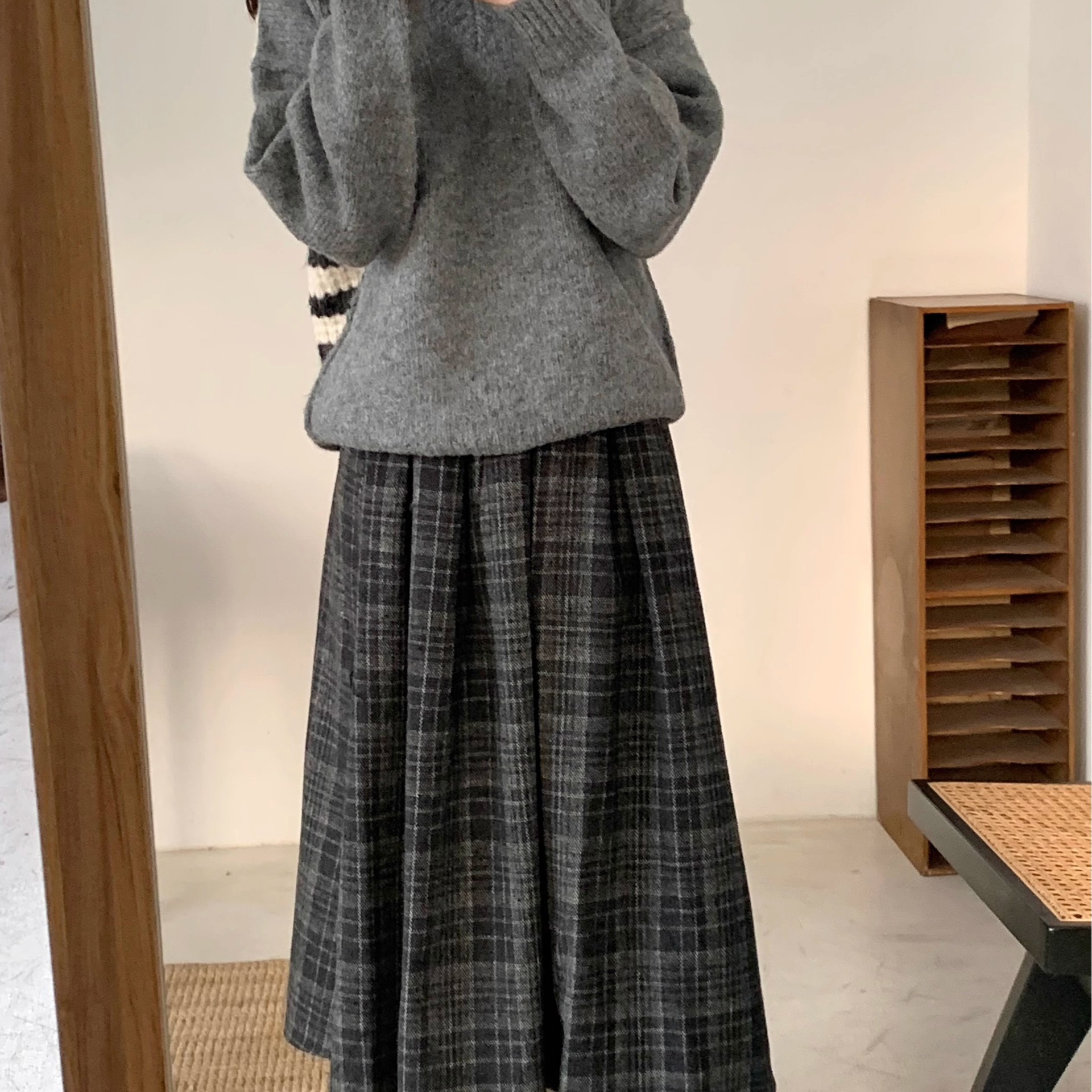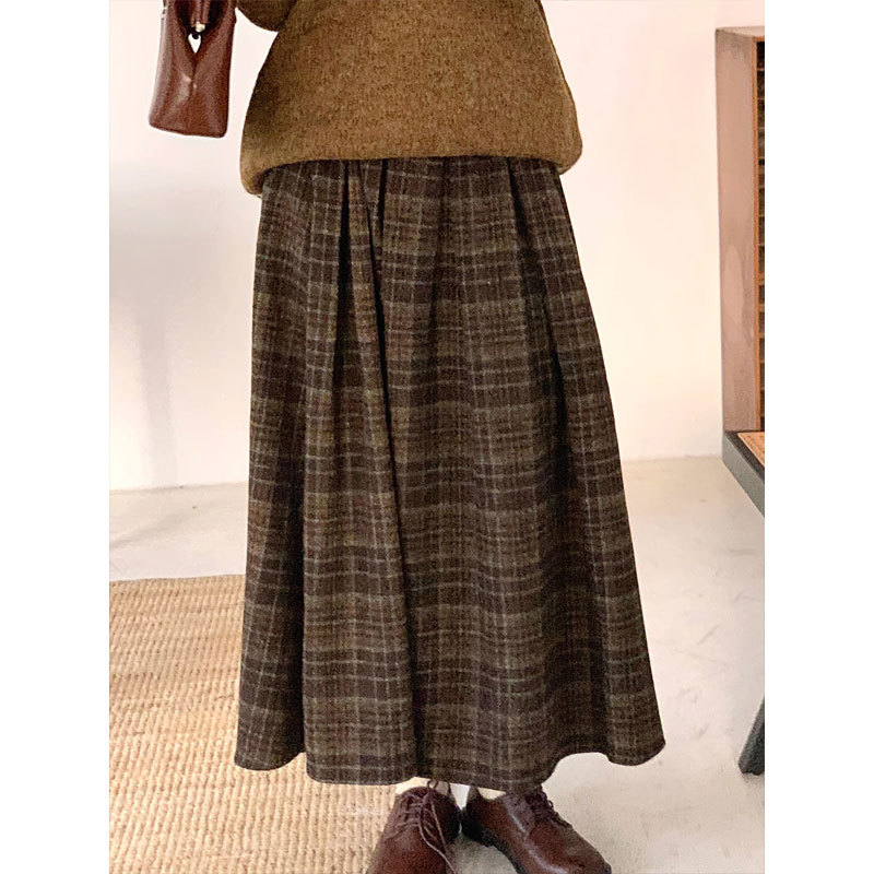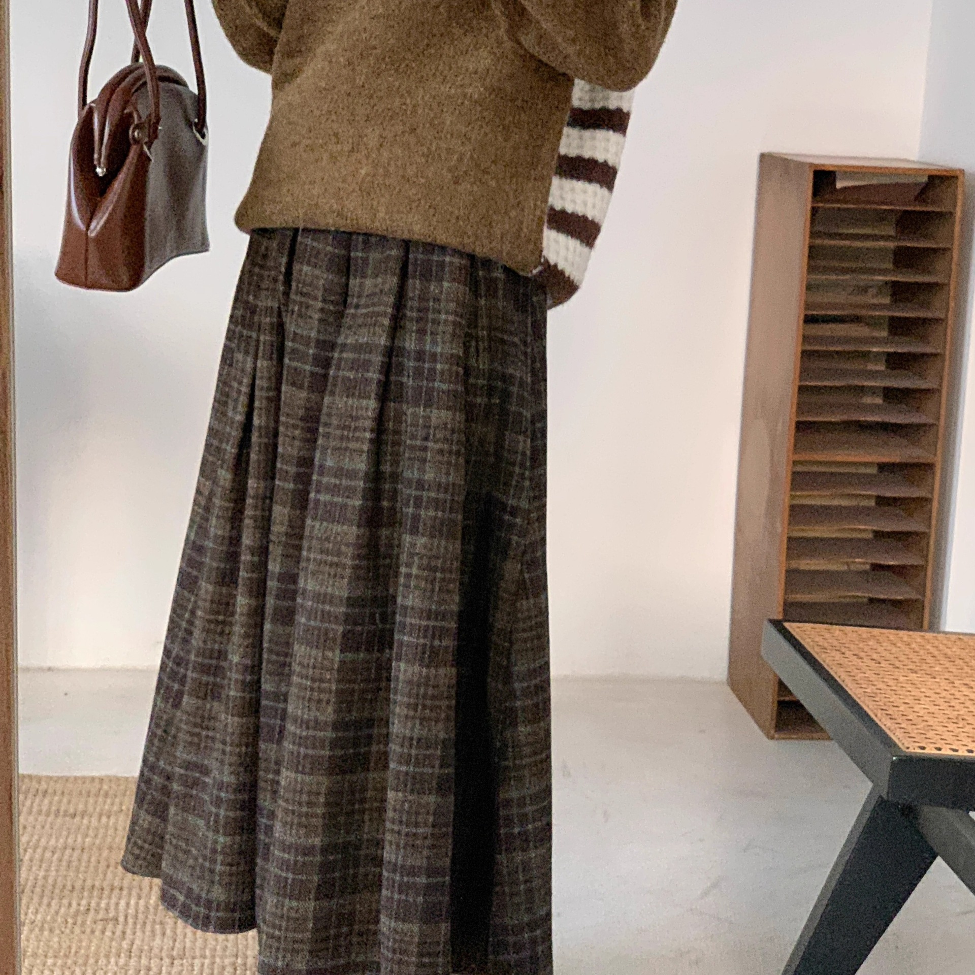 Woolen Preppy Style Retro Plaid Pleated Skirt