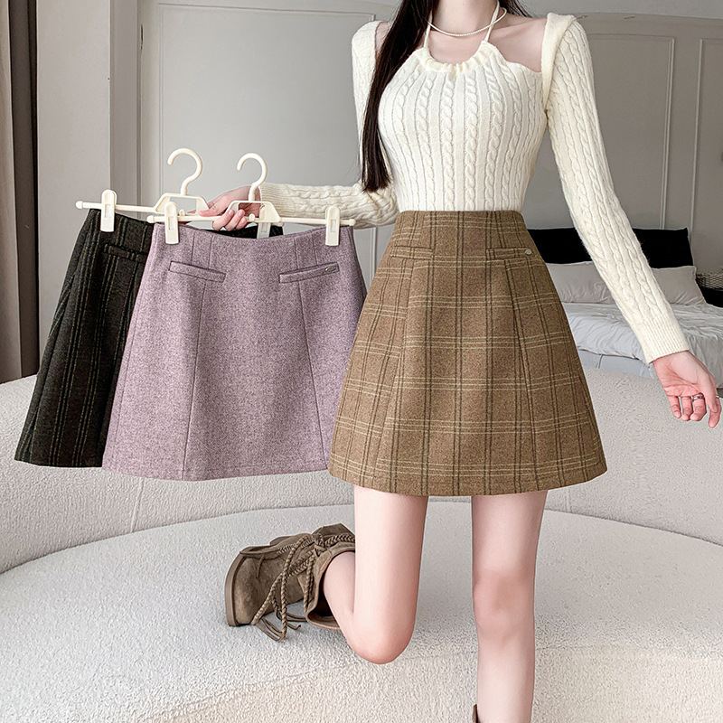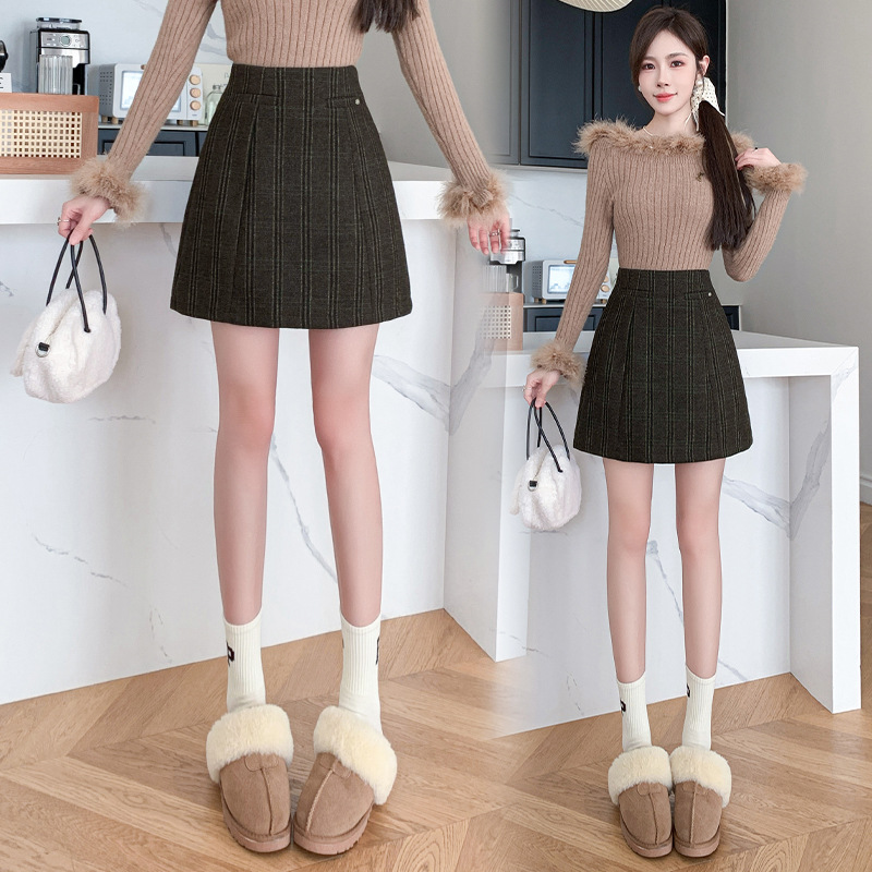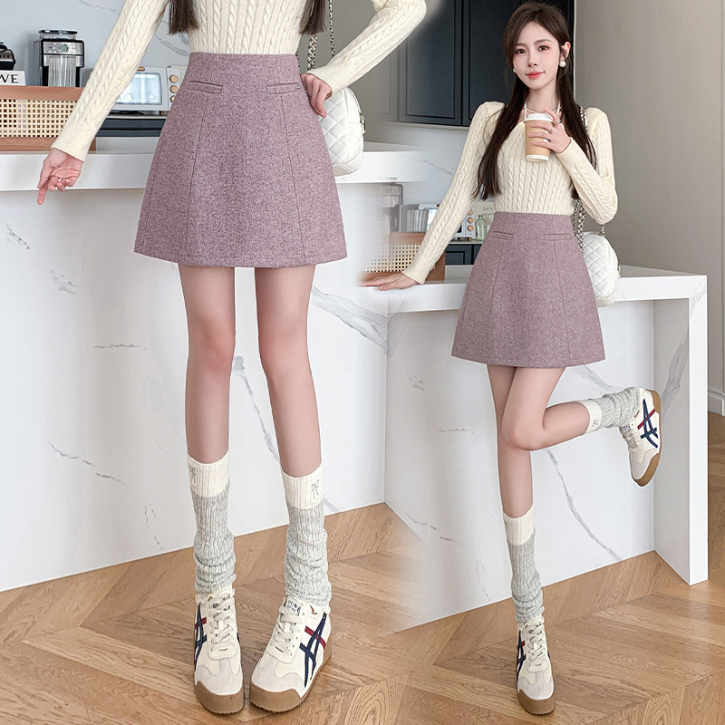 Woolen Skirt Women's Winter New Woolen Line Skirt High Waist Anti-exposure Shorts