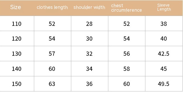 Size: 110,120,130,140,150